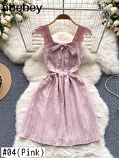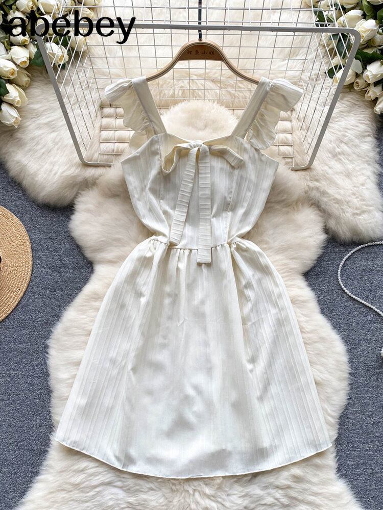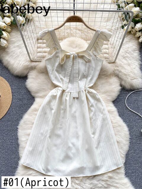 シックサンドレス弓襟フリルタンクバックレススタイル Hotsweet ミニドレス リボン ラッフル 大人ガーリー スウィート キュート カジュアル ソリッドカラー