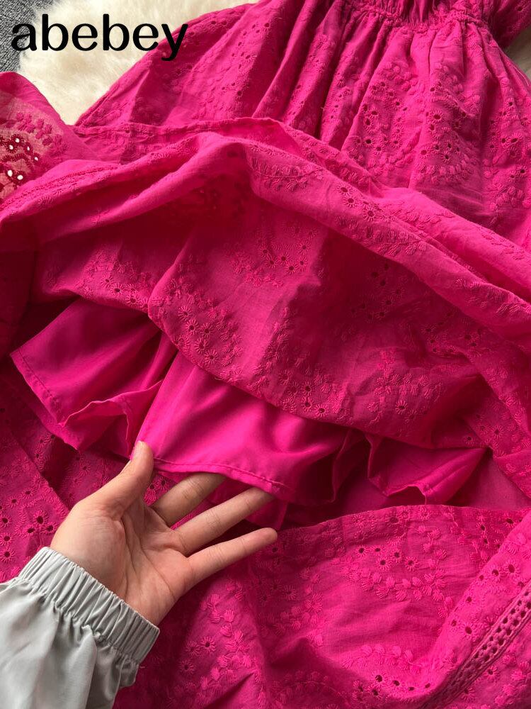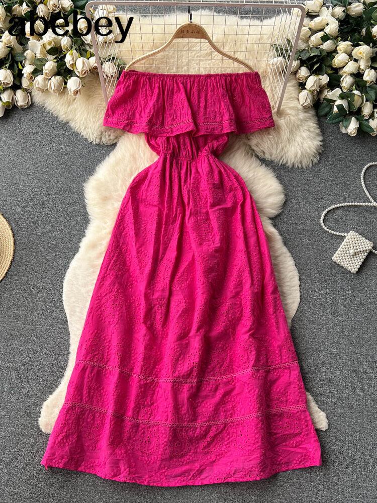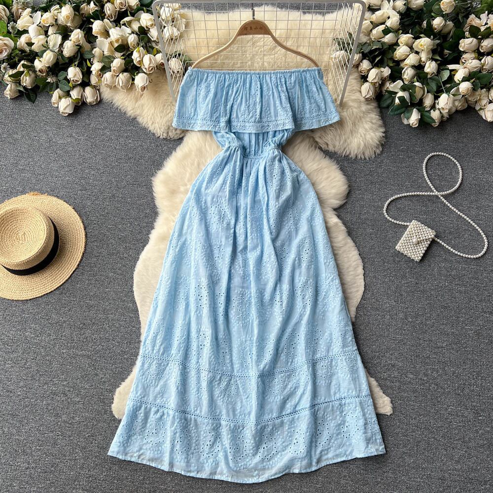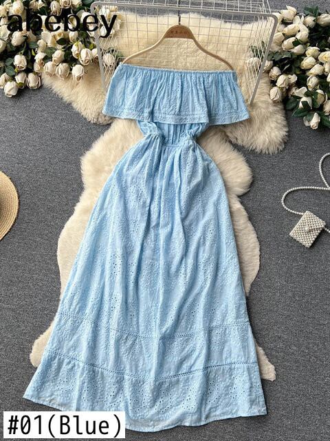 ブルー/グリーン/レッドスラッシュネックサマーレース刺繍ドレスドレスパーティービーチマキシロングドレス 夏物