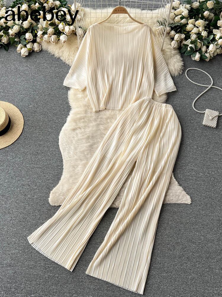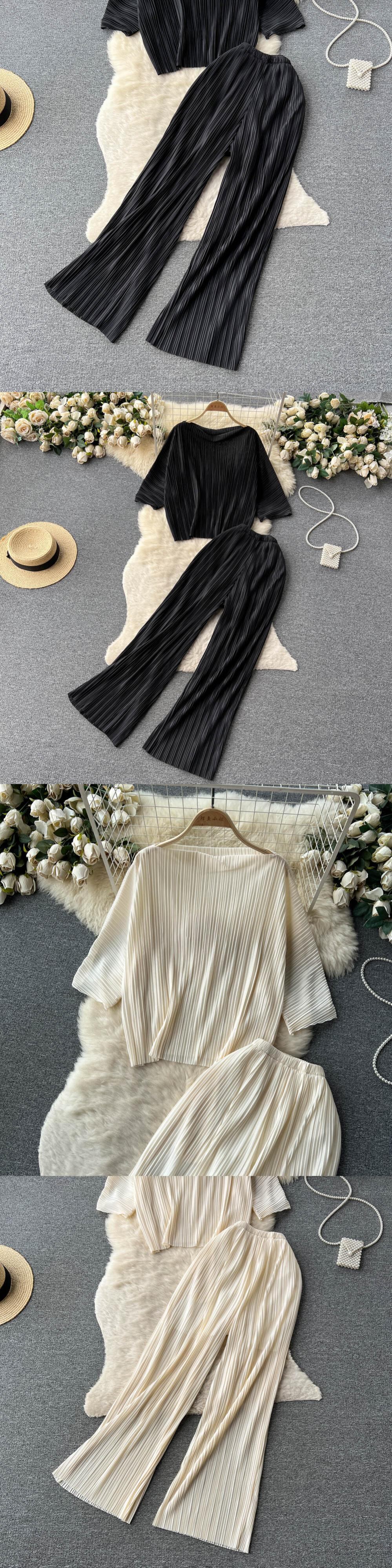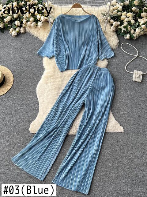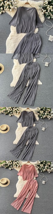 夏ルーズスーツ中空アウト Tシャツ + ワイドレッグロングパンツセット Hotsweet 2 枚ジャージ 大人ガーリー スウィート キュート カジュアル サマー 夏物 ワイドパンツ