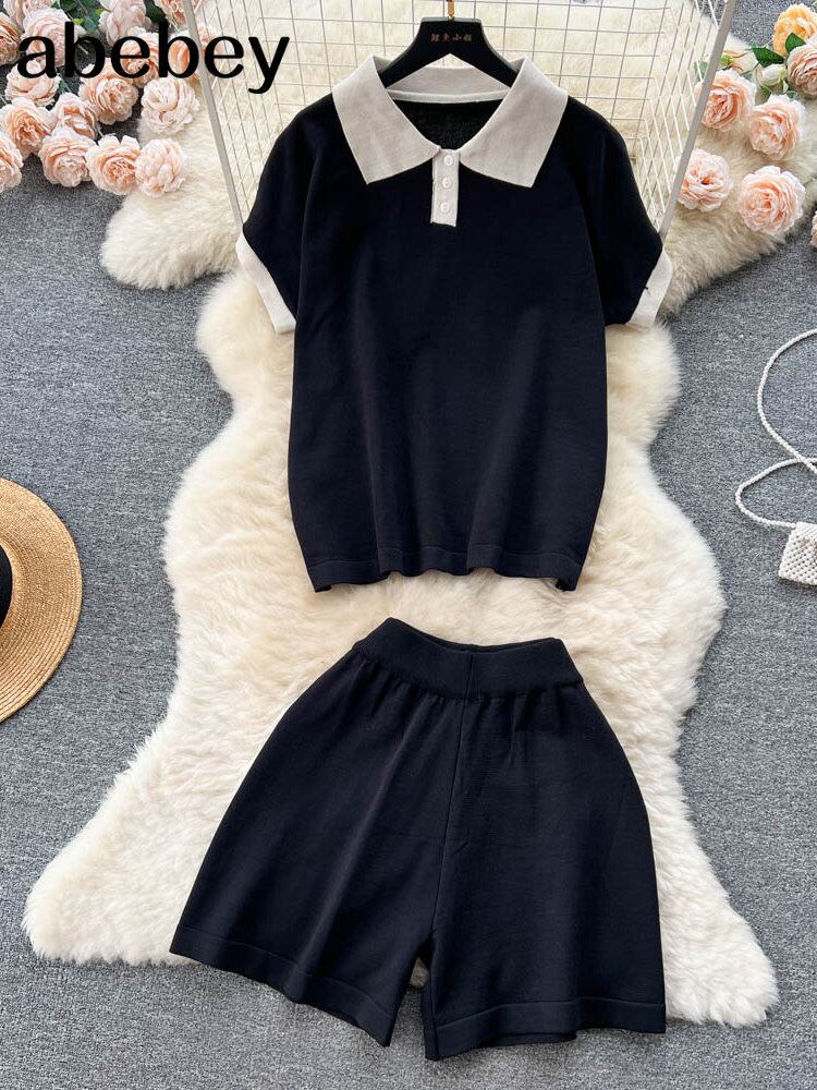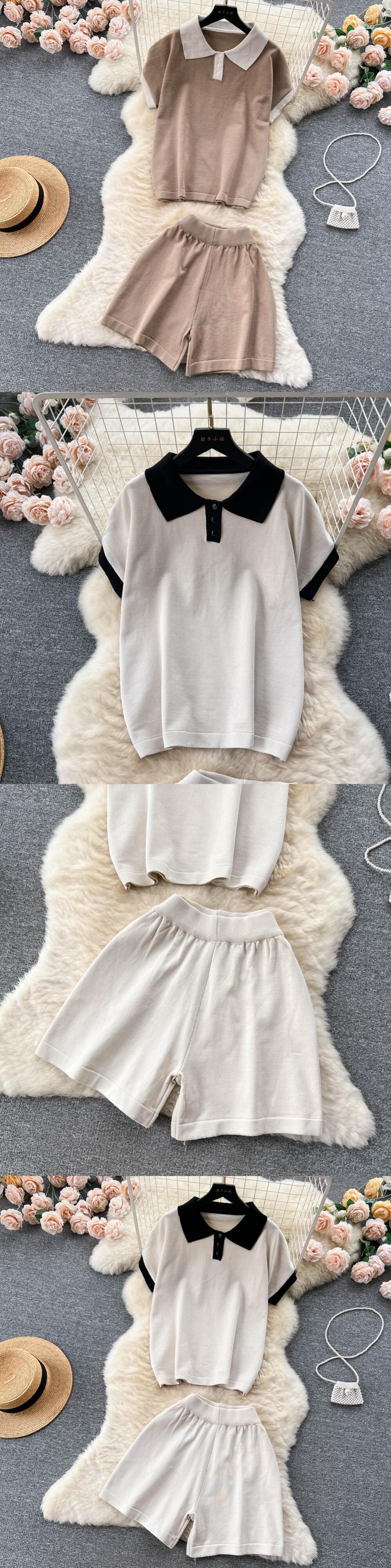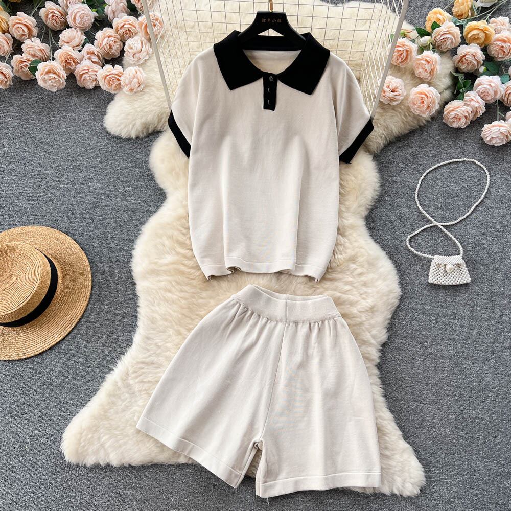 基本パッチワーク春夏 Tシャツセットニットルーズツーピース半袖トラックスーツレディースショーツスーツ ショート ハーフスリーブ スプリング 春物 サマー 夏物 ブルマー