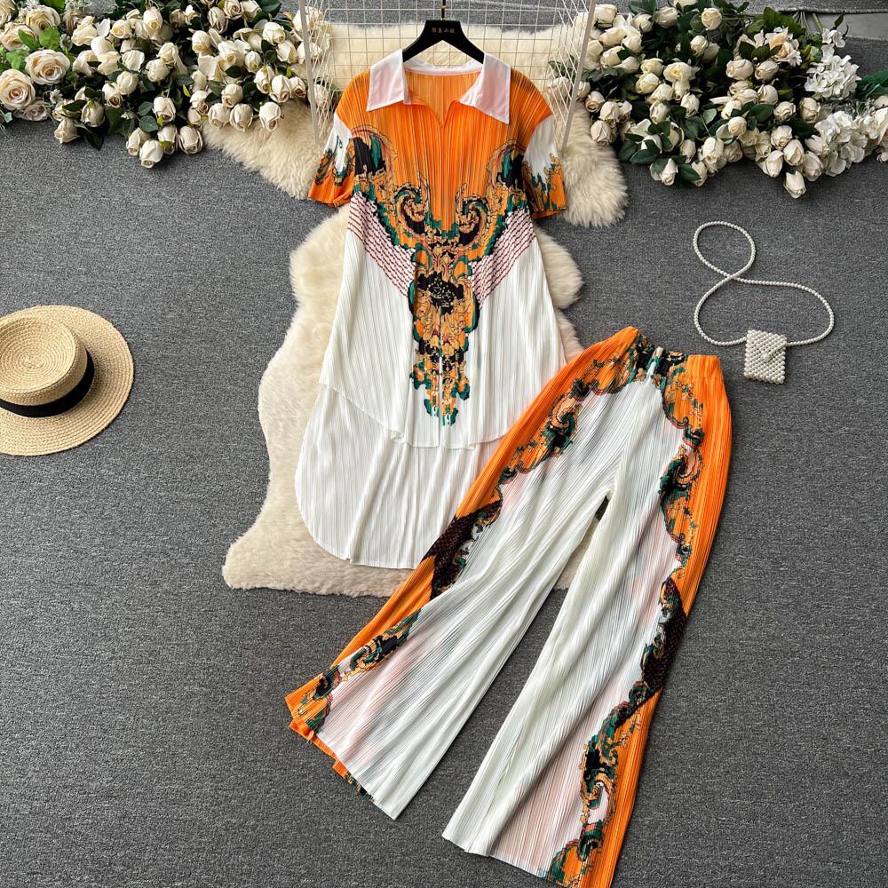 夏ルーズスーツ中空アウト Tシャツ + ワイドレッグロングパンツセット Hotsweet 2 枚ジャージ 大人ガーリー スウィート キュート カジュアル サマー 夏物 ワイドパンツ