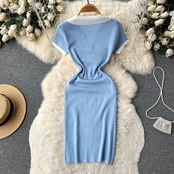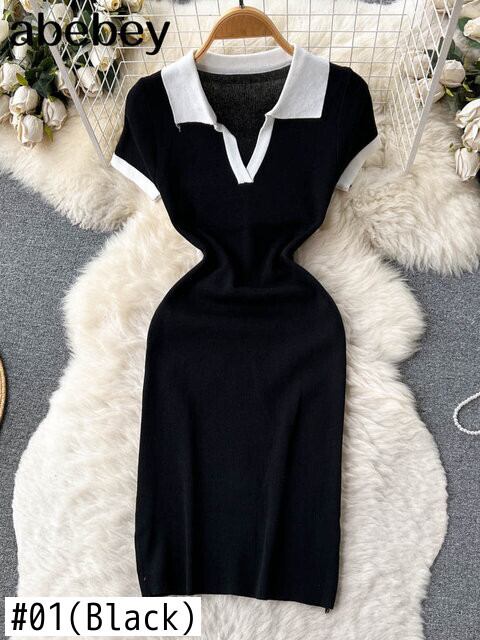 夏ニットビーチショートドレス半袖 V ネック弾性ボディコンサンドレスストリートスリムセクシーミニドレス ハーフスリーブ エラスティック 伸縮 サマー 夏物 Vネック