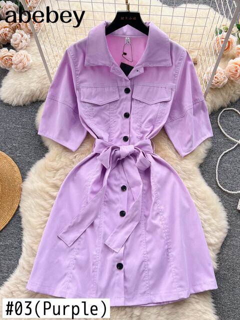 ファッションデニムミディドレスラペルネック半袖 A ラインサンドレスストリートアメリカンレトロショートドレス ハーフスリーブ Aライン