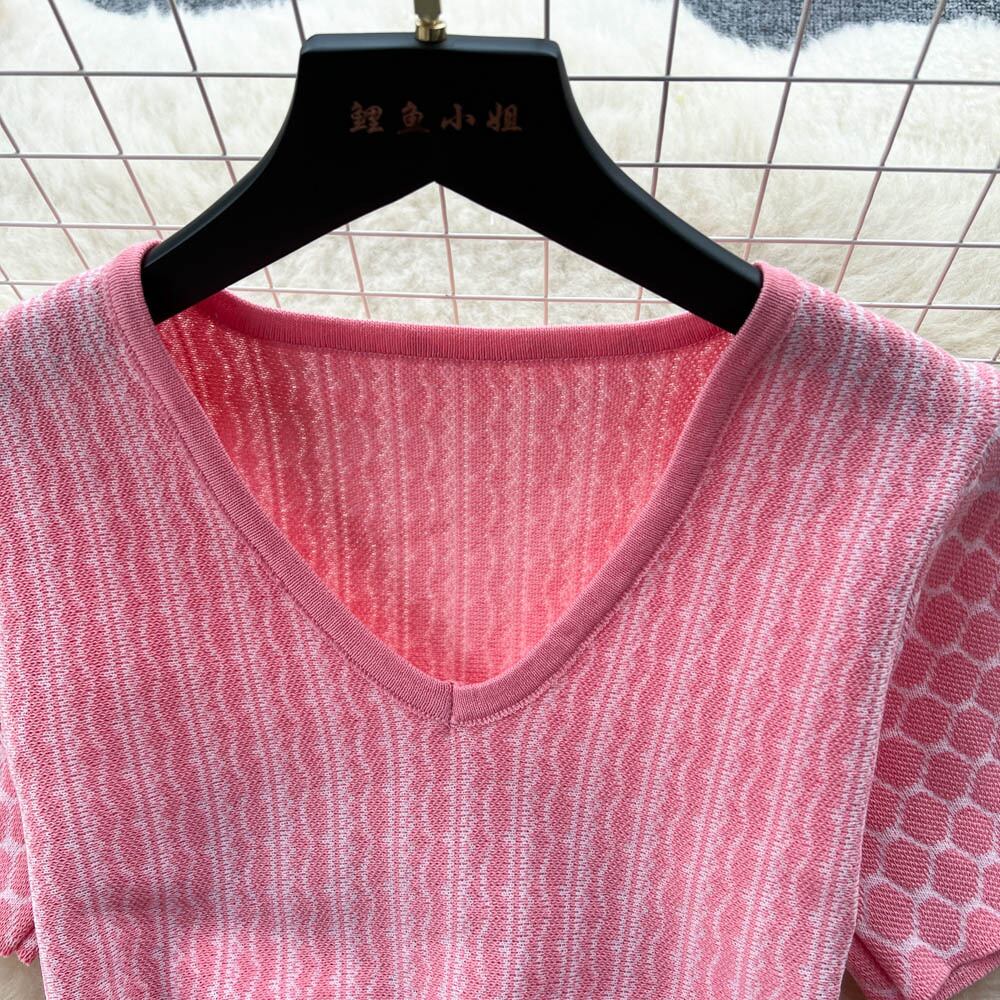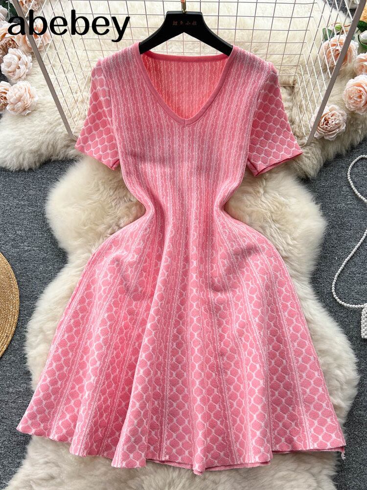 ピンクシック弾性スリム V ネックラップドレスセクシー半袖ラペルニット Vestido ペンシルドレス ショート ハーフスリーブ エラスティック 伸縮 Vネック