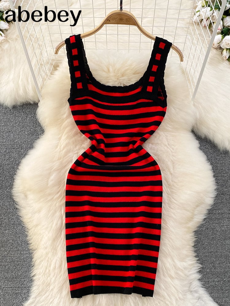 U ネックスリム夏セクシーニットミディドレススパゲッティストラップ Vestido デフェスタパーティーボディコン膝丈 Vestidos サマー 夏物
