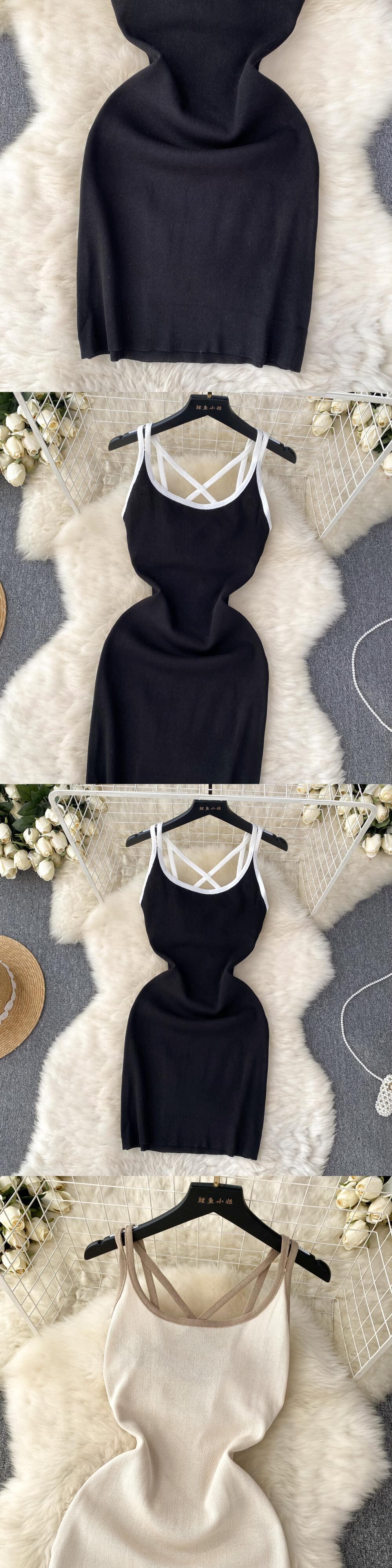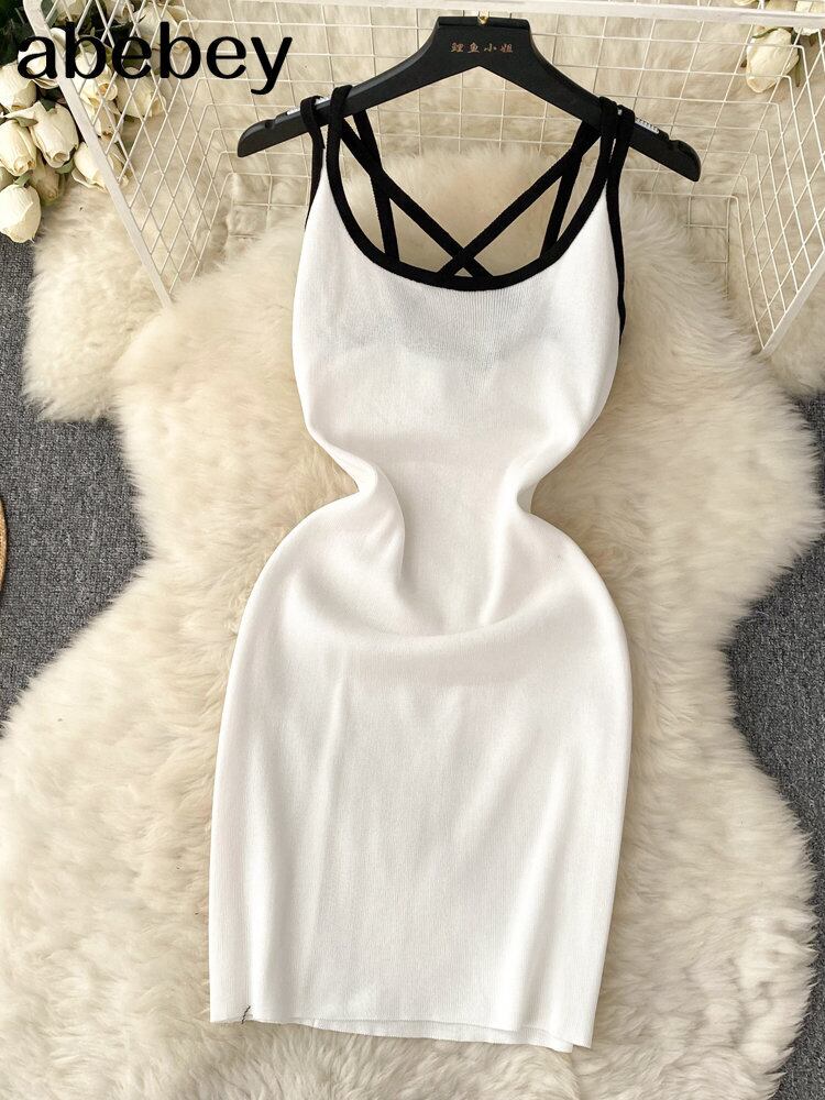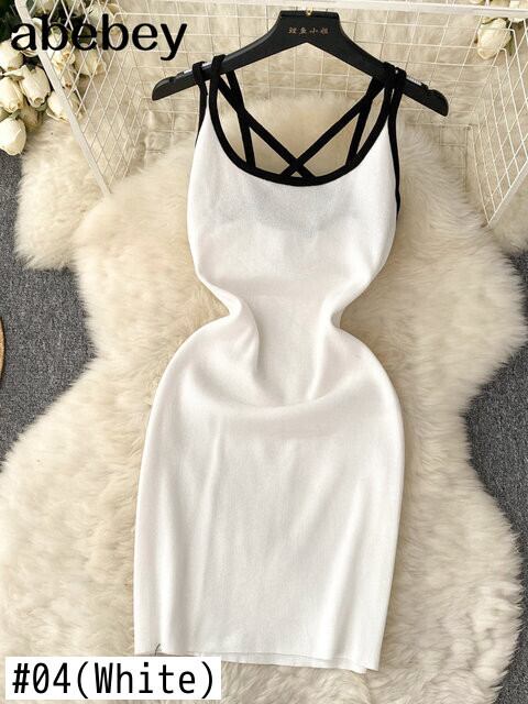 サマーニットセクシーストラップドレス U ネッククロスタンク弾性ウエストボディコンサンドレスビーチ背中開いたショートドレス 夏物
