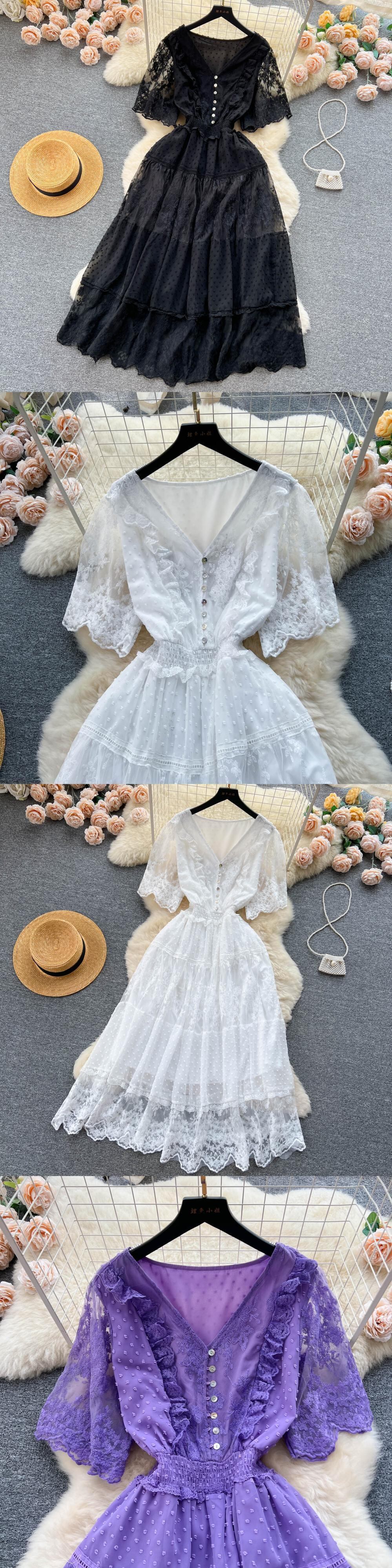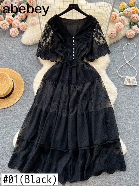 夏レースパッチワークロングドレスイエロー/レッド/パープルフレアスリーブウエスト A ラインパーティーマキシ Vestidos サマー 夏物 Aライン