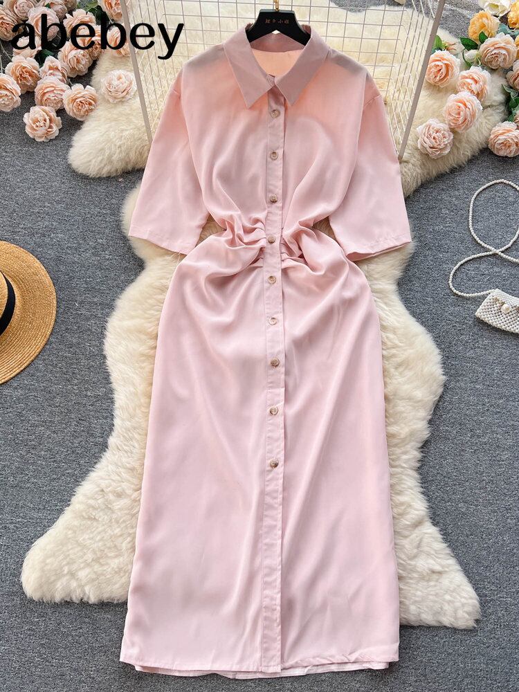 夏ボヘミアン シャツ ドレス ラペル ボタン スリット プリーツ ストラップ スリム デニム ブルー ドレス サマー 夏物