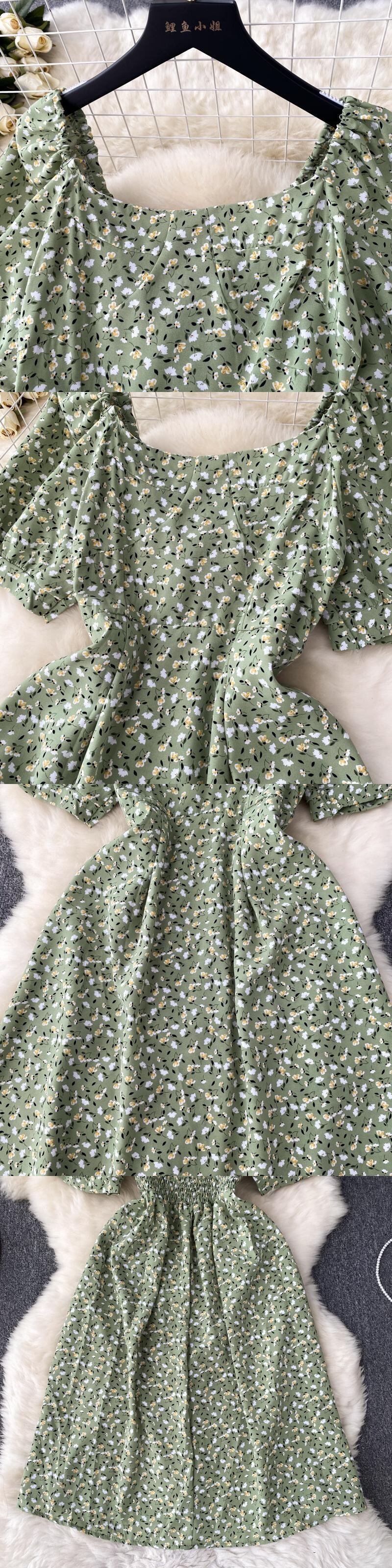 スタイルロングドレススクエアカラー半袖ジッパーストリート A ライン気質サンドレス ショート ハーフスリーブ Aライン スクウェア