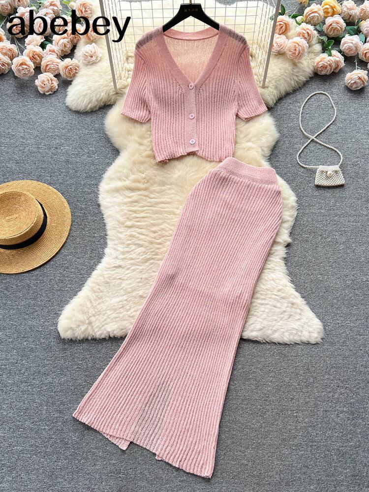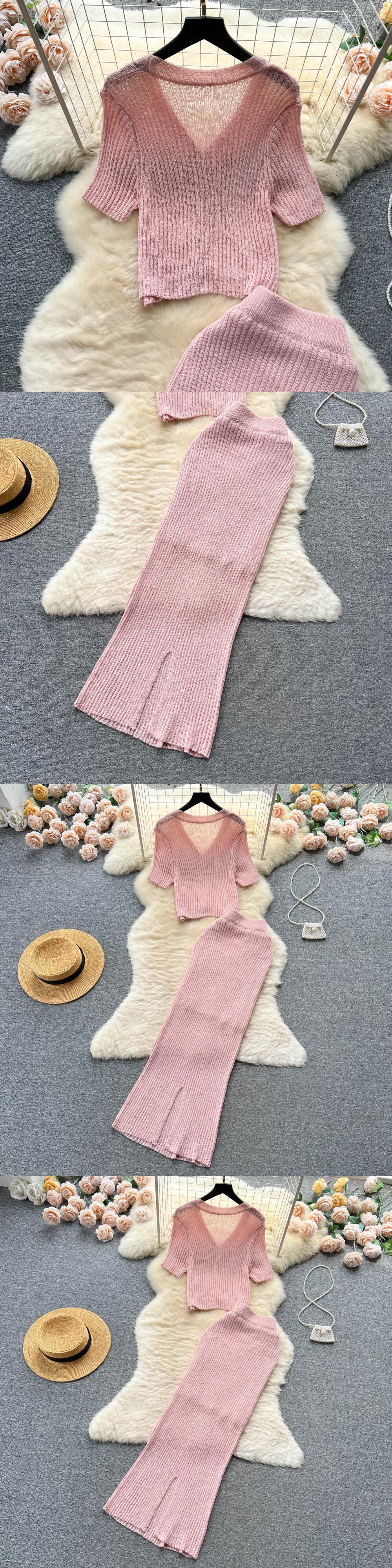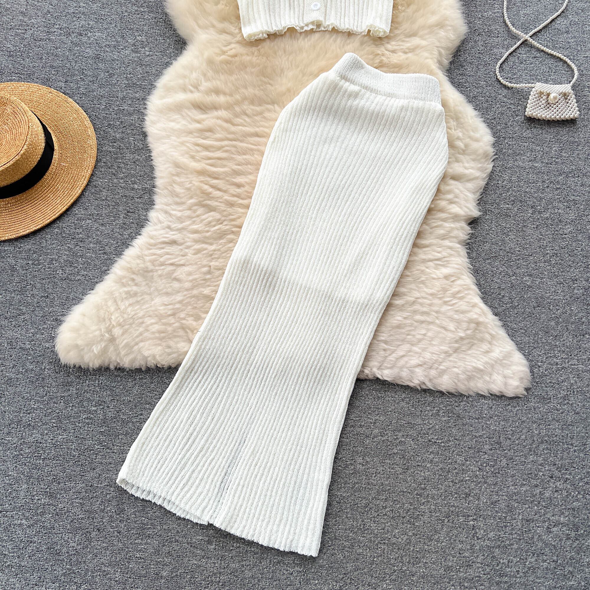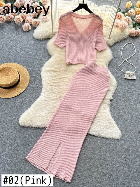 ストリートニットビーチスーツスリムトップ + 弾性ロングスカートボディコンセクシー 2 個セット エラスティック 伸縮