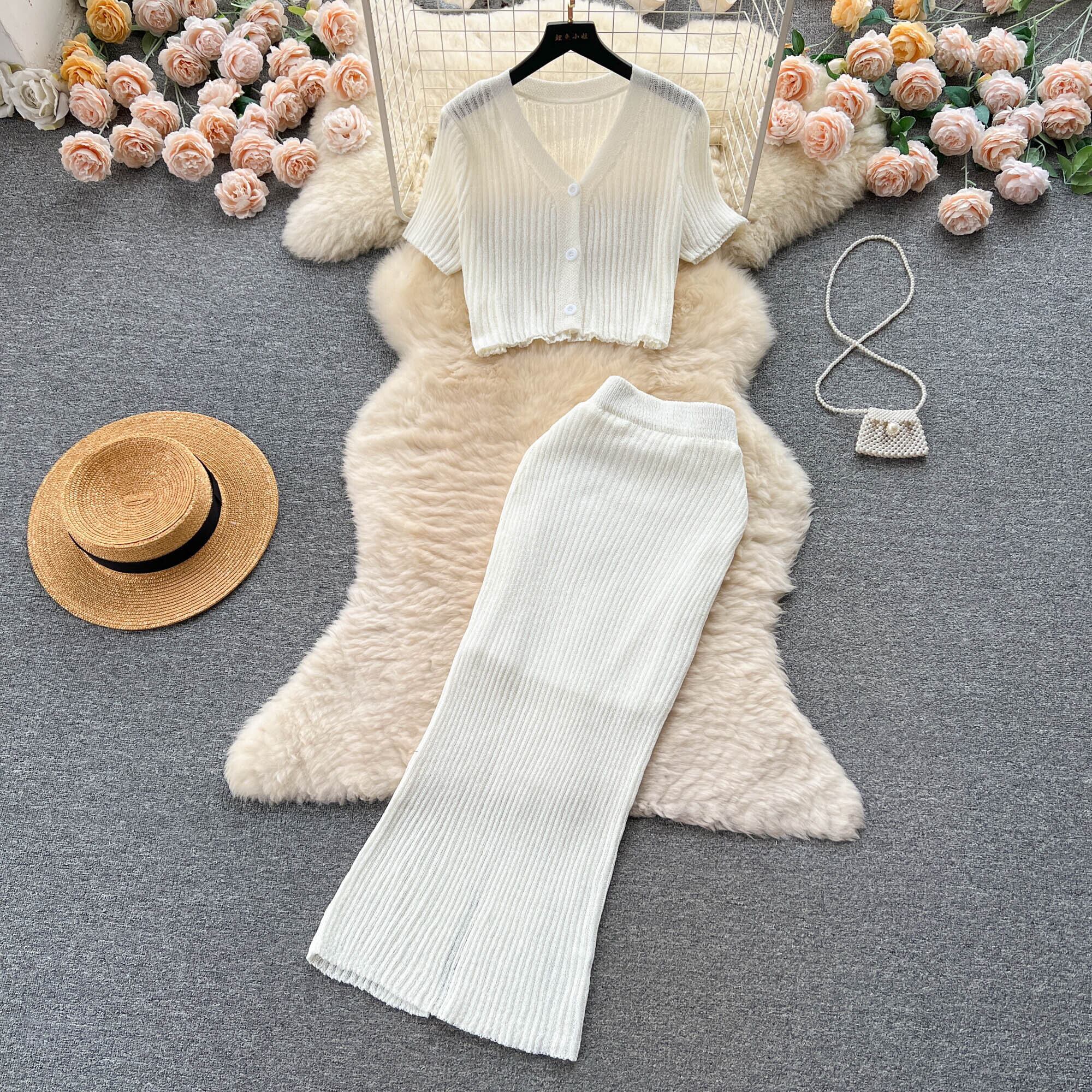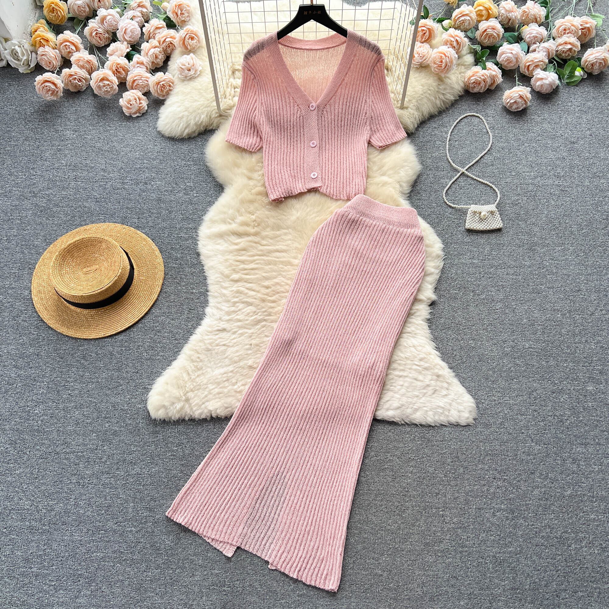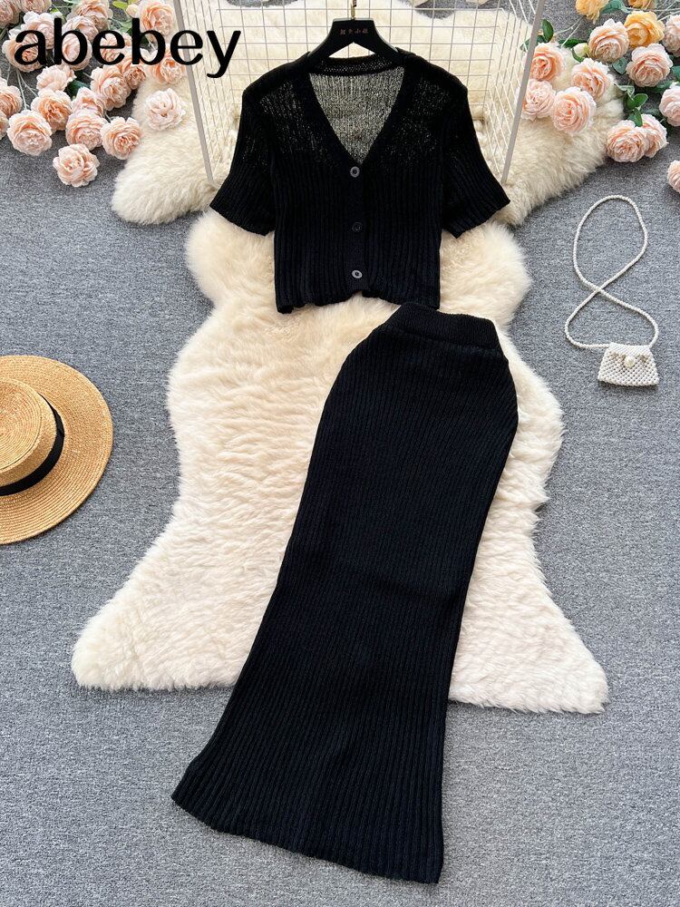 ストリートニットビーチスーツスリムトップ + 弾性ロングスカートボディコンセクシー 2 個セット エラスティック 伸縮