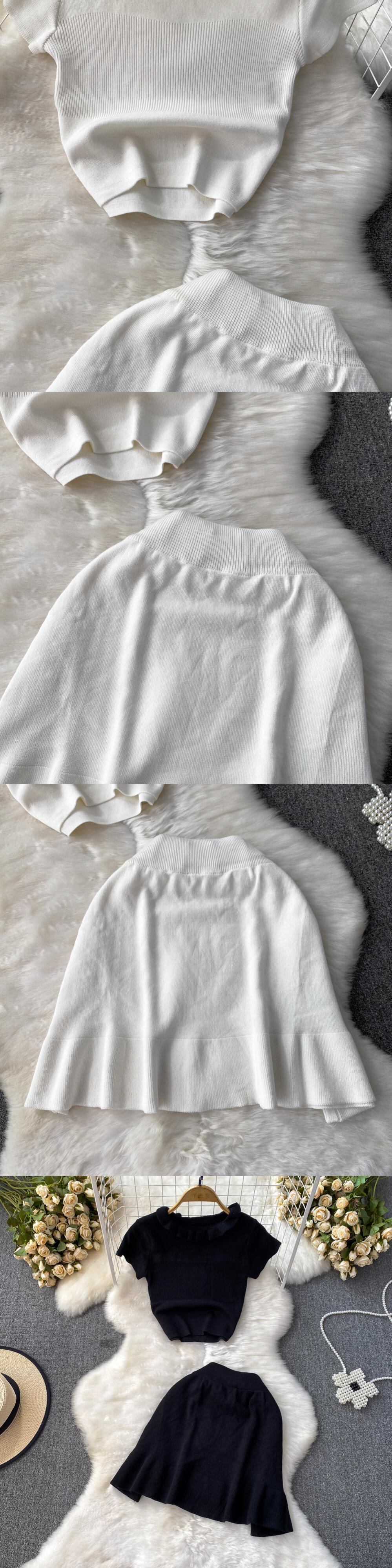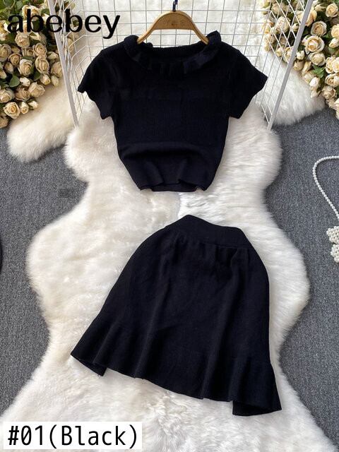 ニット 2 点セット汗ばむ半袖クロップトップボディコンヒップスカートマッチングセットオフィスレディ衣装 ショート ハーフスリーブ ソリッドカラー 会社 学校 通勤や通学にも