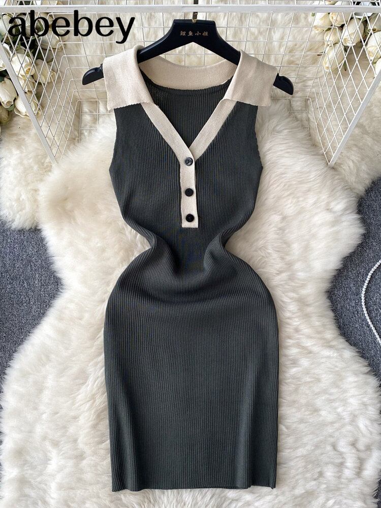 ニットシースサンドレスノースリーブホットスウィートパッチワークスリムドレス弾性ビーチミニドレス エラスティック 伸縮 大人ガーリー キュート カジュアル