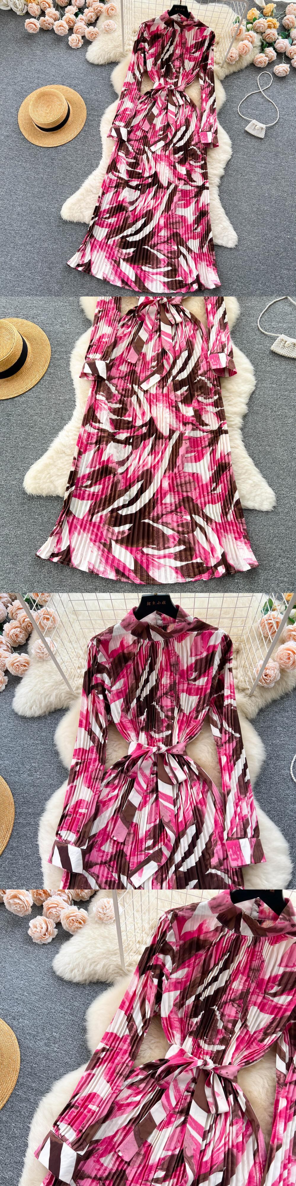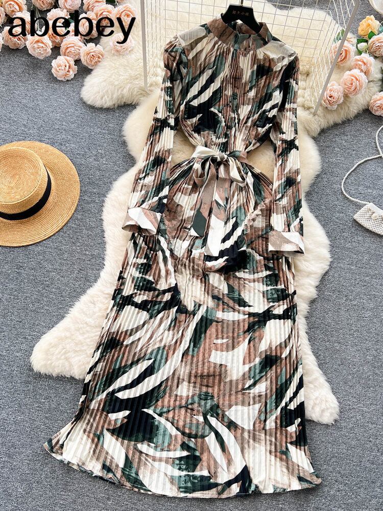 フレンチロング花柄ドレスストリートロングパフスリーブレースアップシースAラインパーティードレス