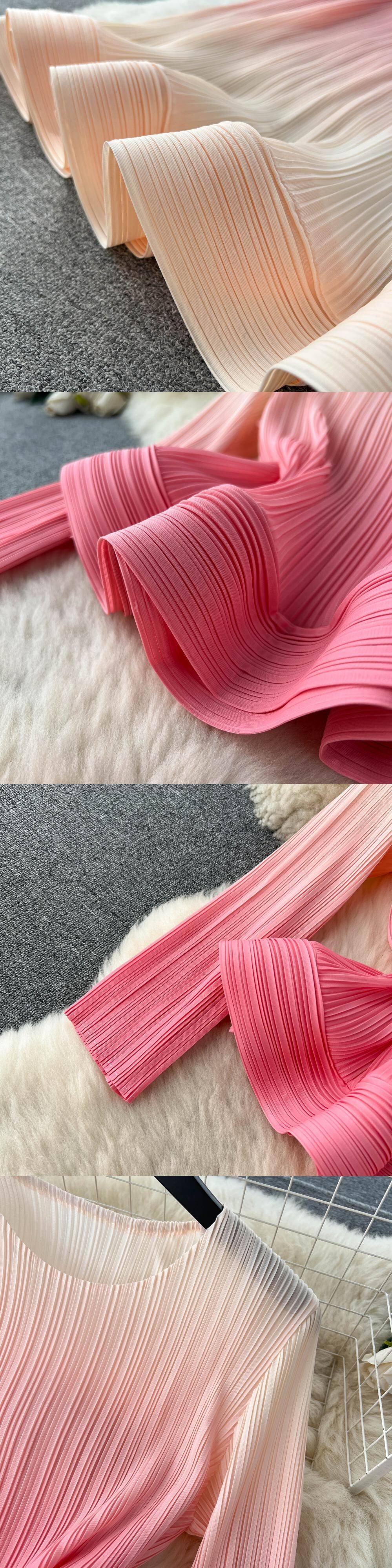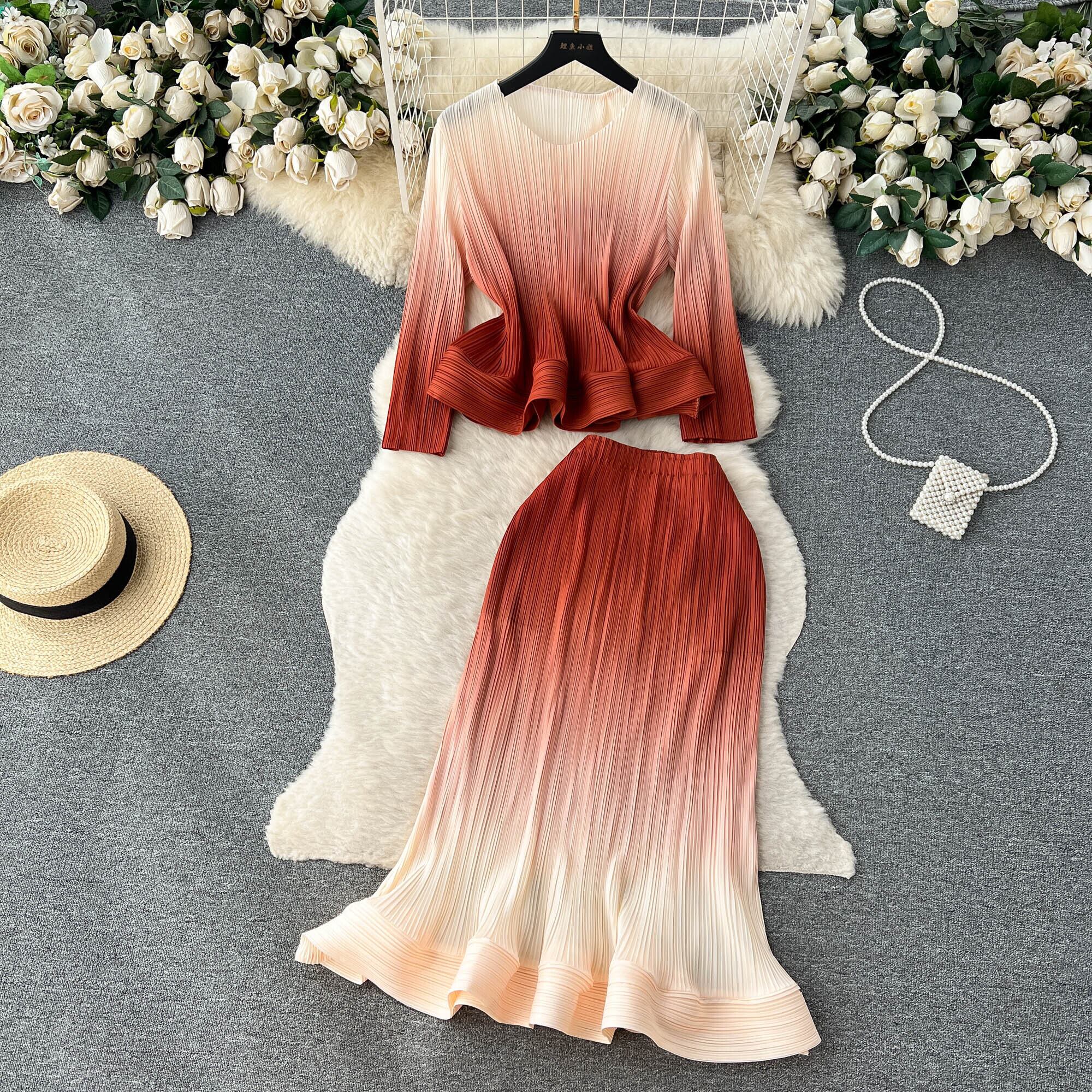 Woemn レインボープリント 2 点セット春秋 o ネックフリルドレープスリーブシフォンブラウス + ウエストプリーツスカートスーツ スプリング 春物 オータム 秋物 Oネック