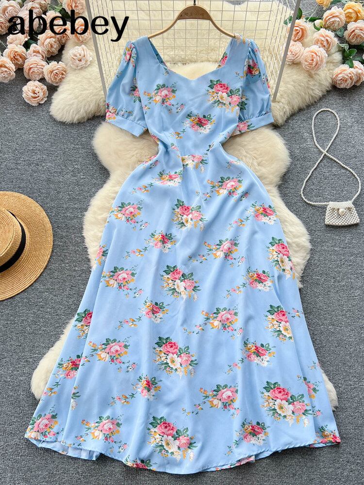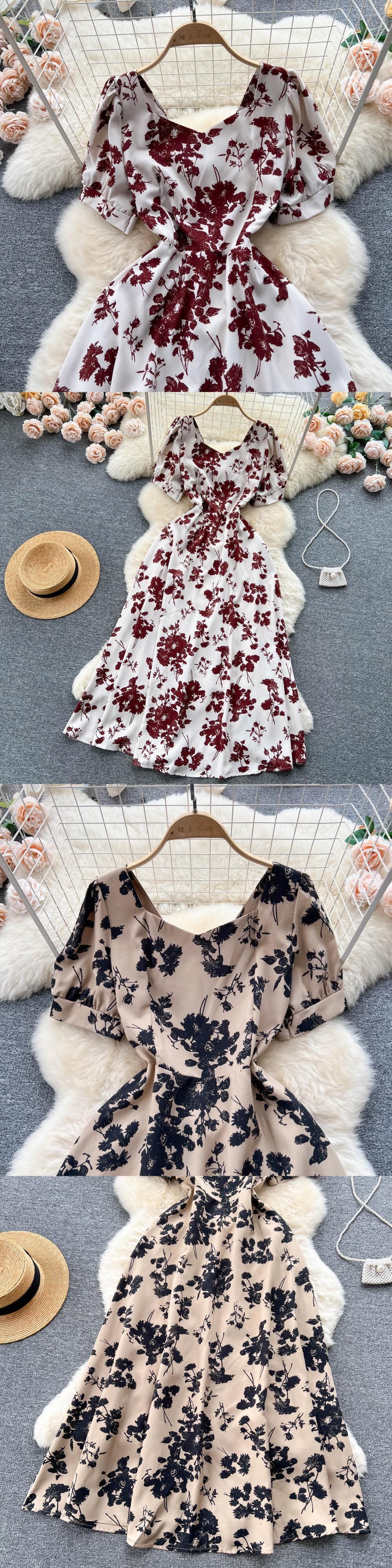 夏不規則プリントドレススクエアカラーパフ半袖ウエスト A ラインスリム Vestidos ショート ハーフスリーブ サマー 夏物 Aライン スクウェア