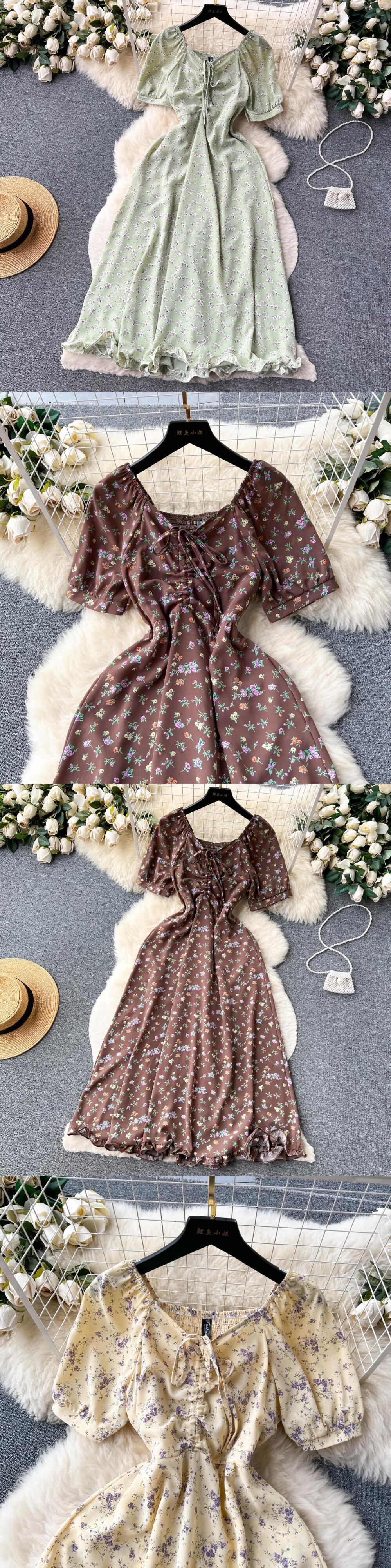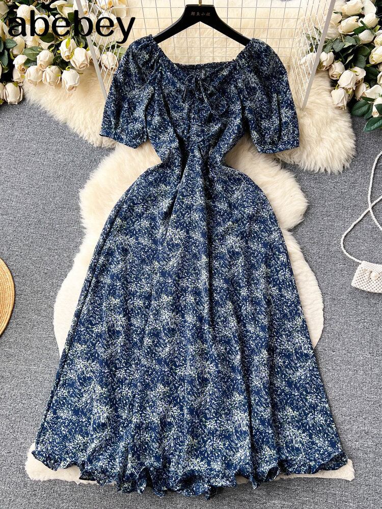 夏花柄ミディドレスビーチ休暇 V ネック半袖ウエスト A ラインパーティー Vestidos ローブ ショート ハーフスリーブ サマー 夏物 Vネック Aライン
