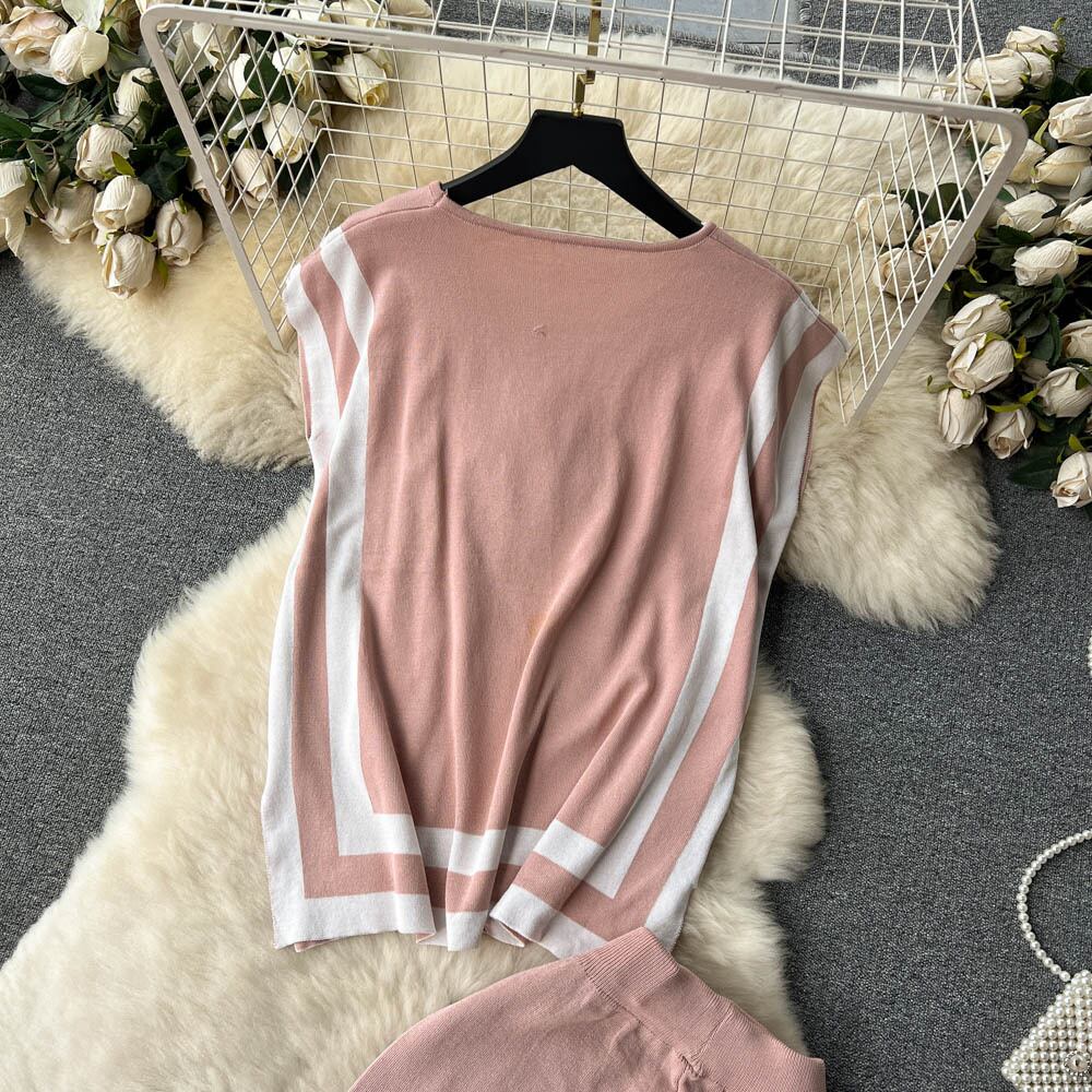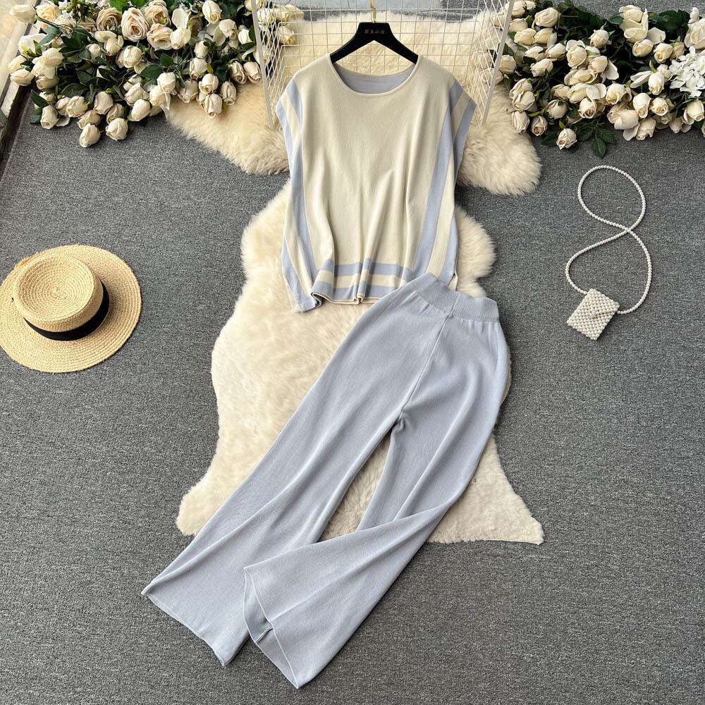 夏 2 ピーススーツショート O ネックノースリーブトップ + ワイドレッグロングパンツルーズストリートセット サマー 夏物 Oネック ワイドパンツ