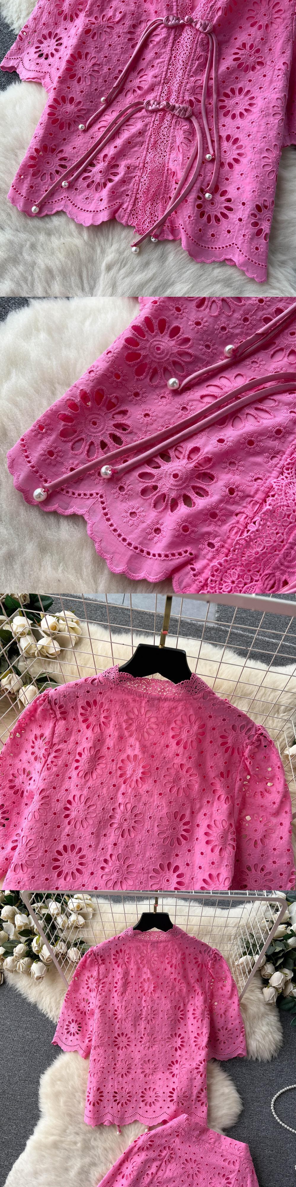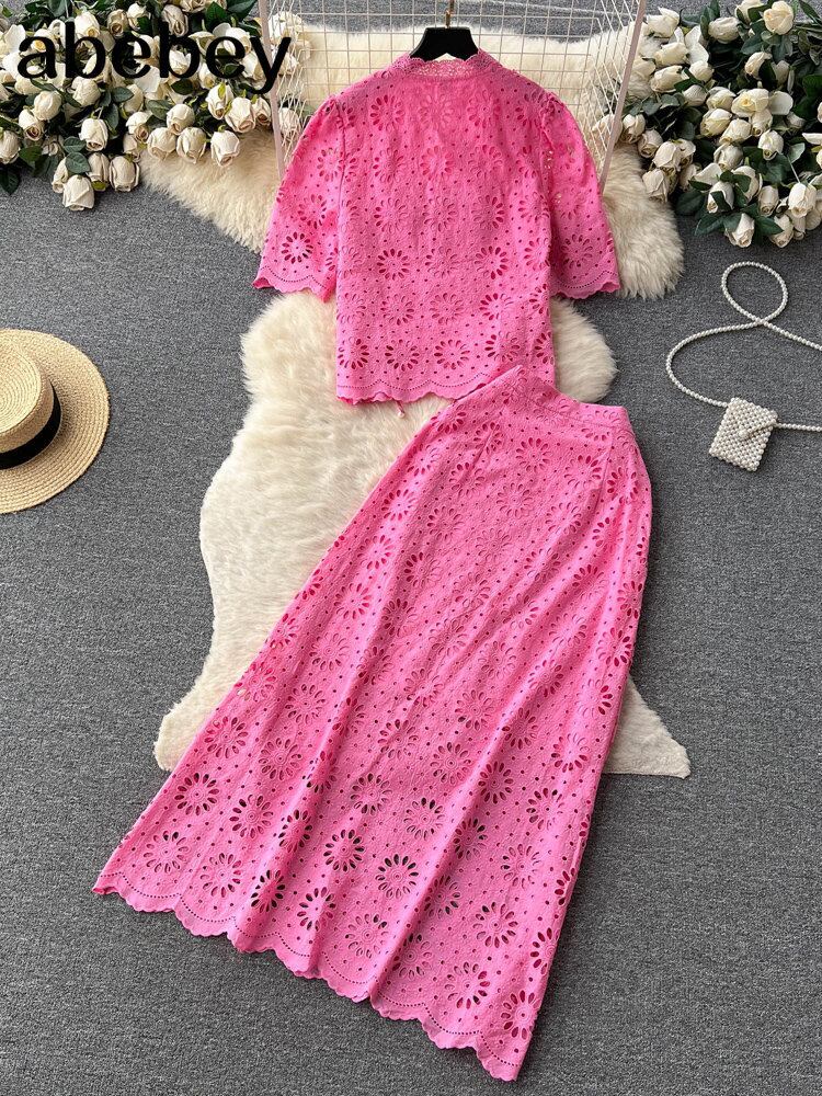 夏レース 2 枚セット V ネック半袖トップ + A ラインロング巾着スカートストリートスーツ ショート ハーフスリーブ サマー 夏物 Vネック ソリッドカラー