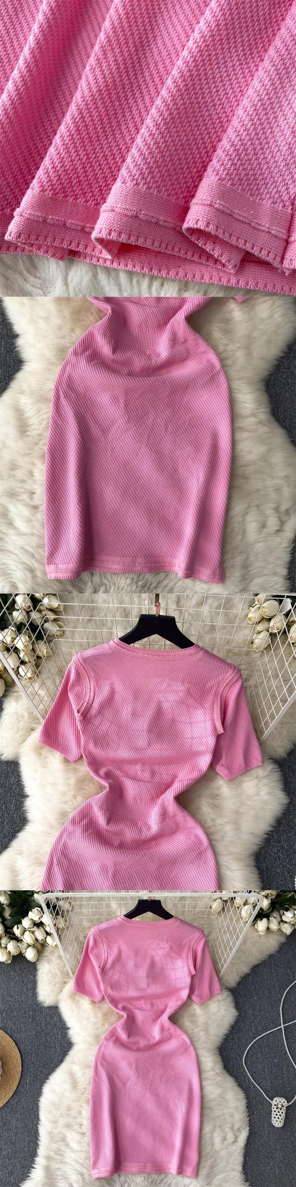 スタイルサンドレス V ネック半袖シャーリングストリート甘い夏ミニ A ラインドレス ショート ハーフスリーブ 大人ガーリー スウィート キュート カジュアル サマー 夏物 Vネック Aライン ソリッドカラー