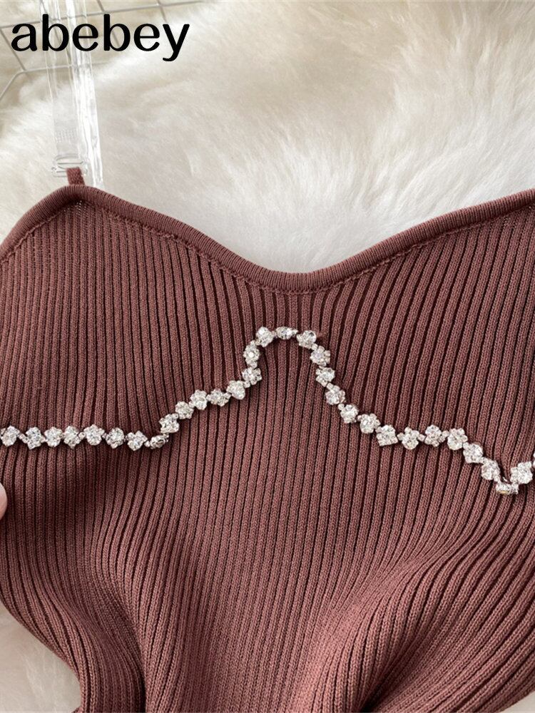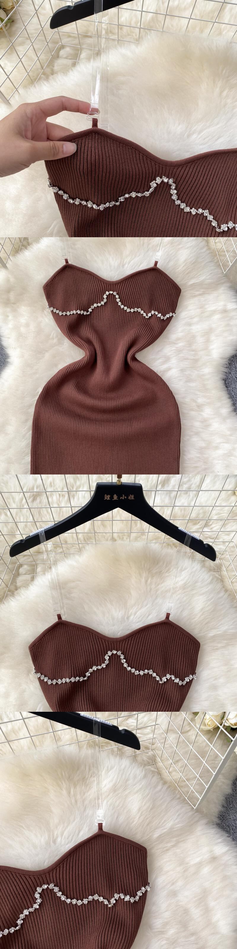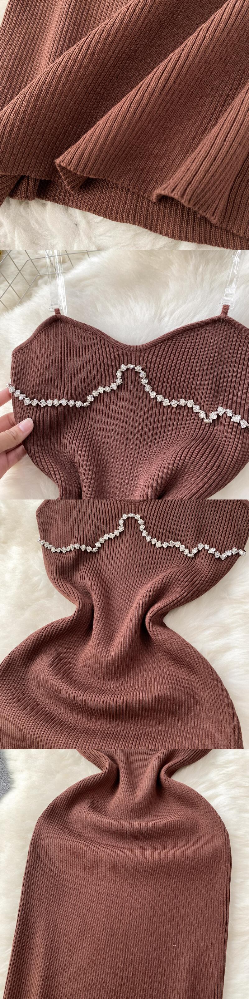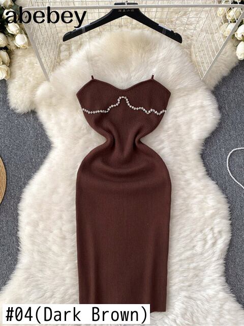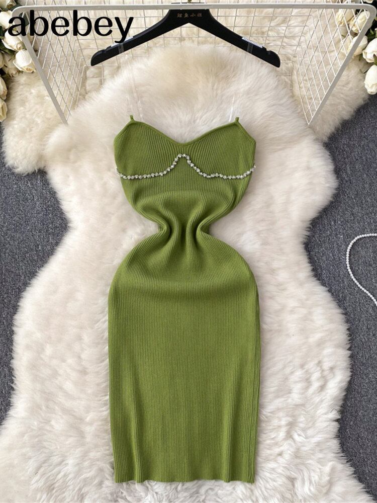 ビーズサマーニットセクシーストラップドレスタンク弾性ウエストボディコンサンドレスビーチスプリットバックレスロングドレス 夏物