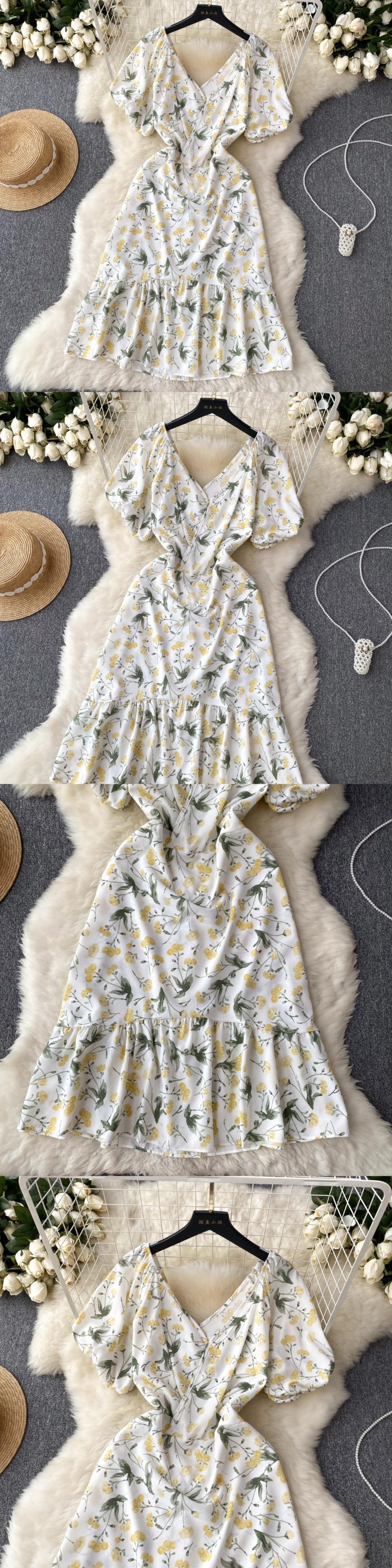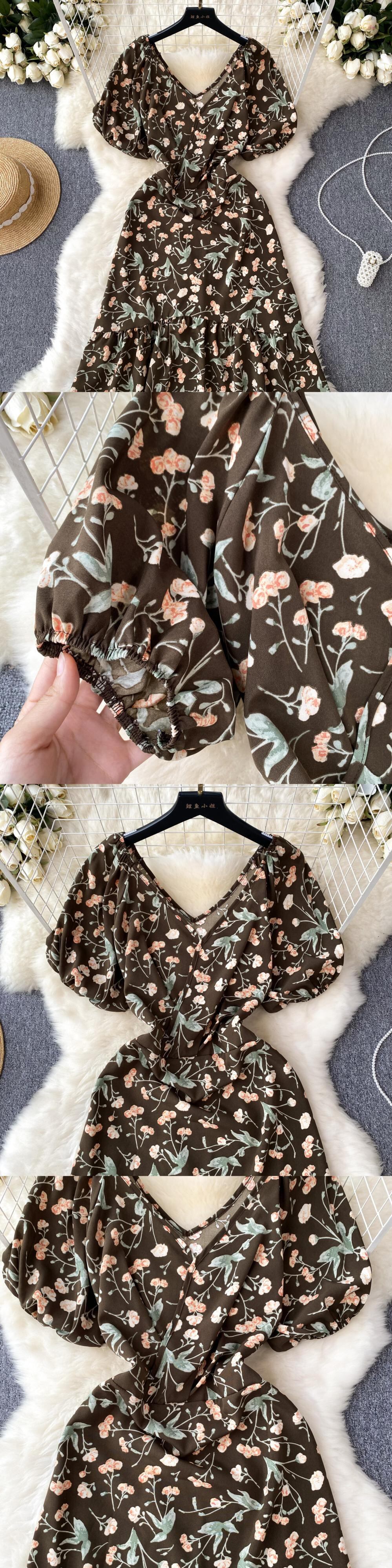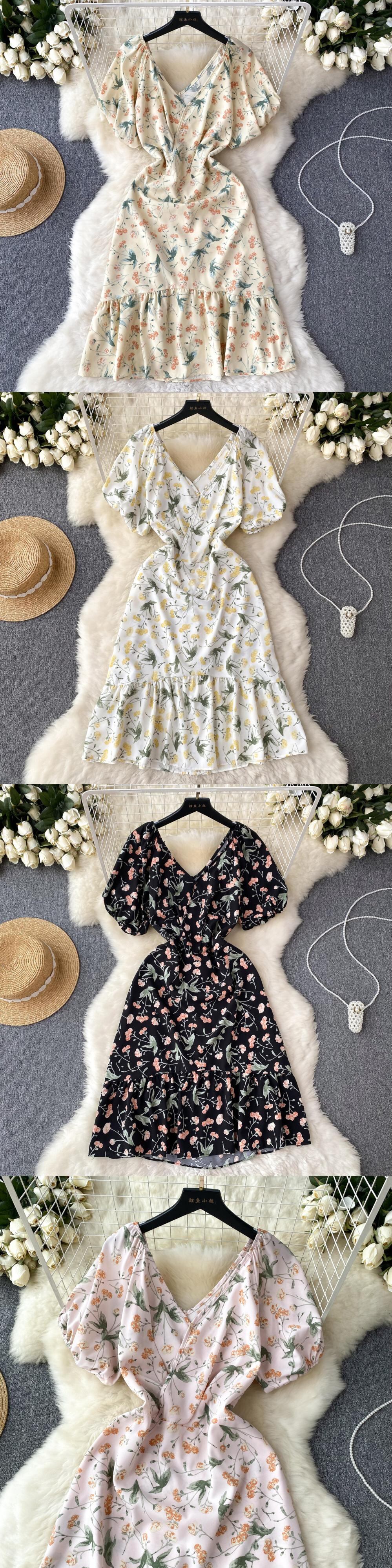 フランスミニドレス V ネックブラックレスレースアップ半袖花柄不規則フリルボディコンドレス ショート ハーフスリーブ ラッフル Vネック