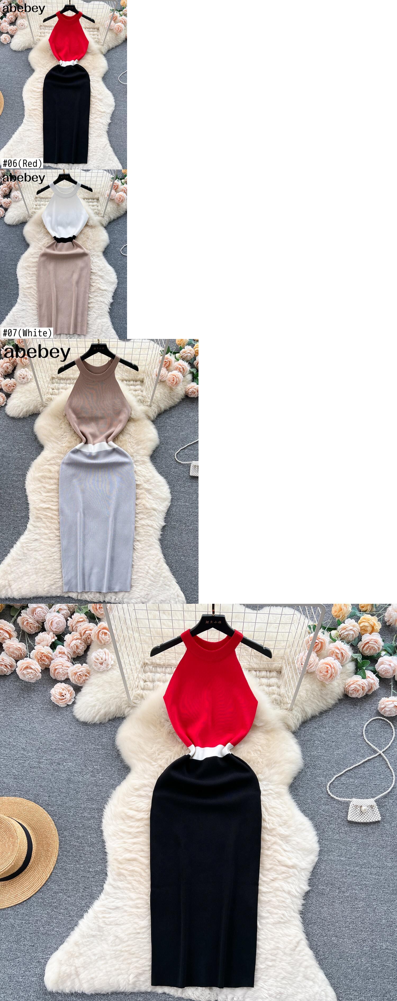 ノースリーブパッチワークニットボディコンラップドレスフレンチパーティー Vestidos 夏セクシースリムドレス Ins サマー 夏物