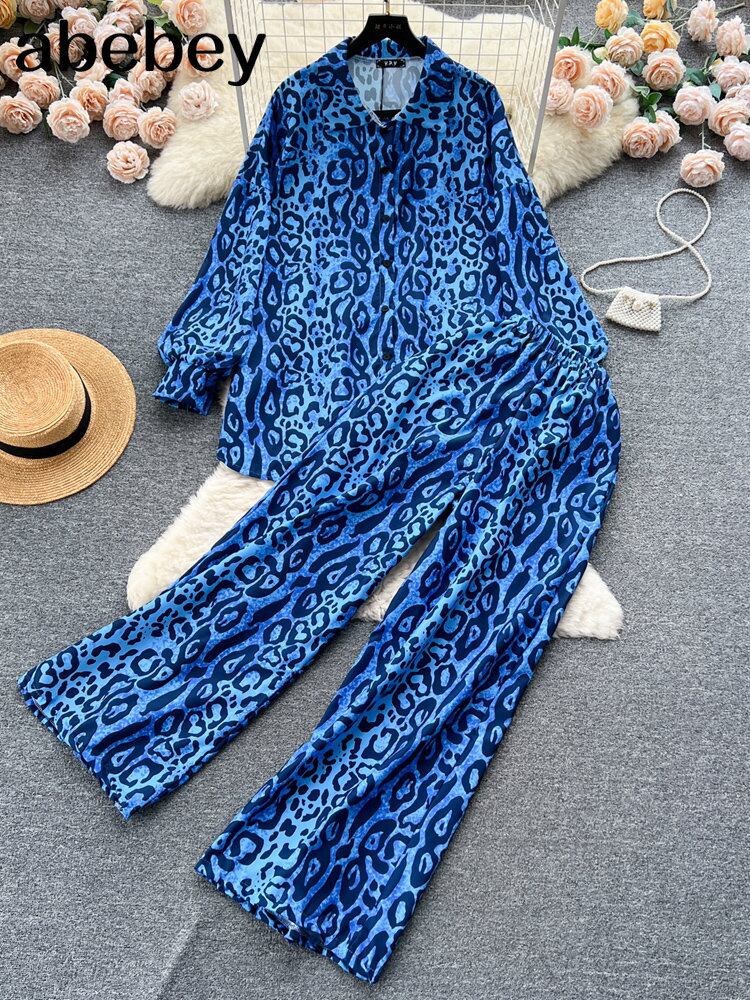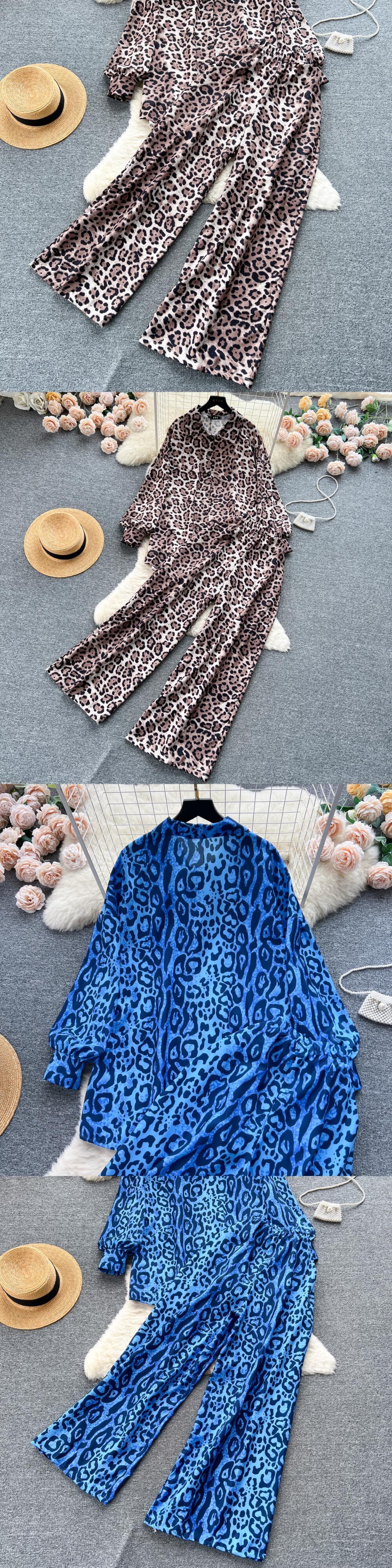 プリントパジャマセット 2 個パンツ付き長袖パジャマトップとパンツグリーンカラーホームウェア ロング