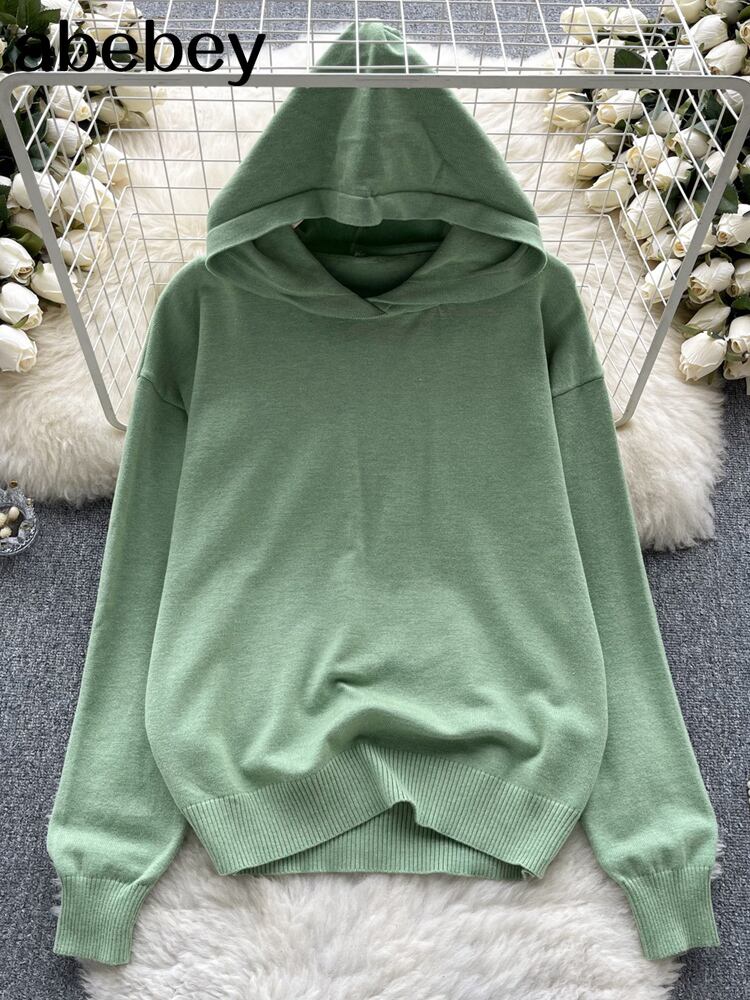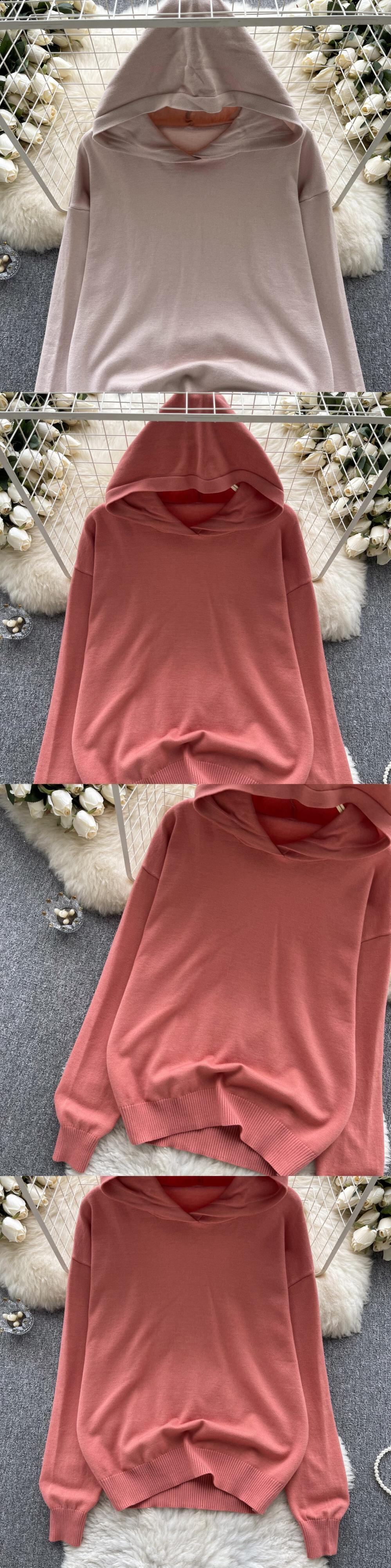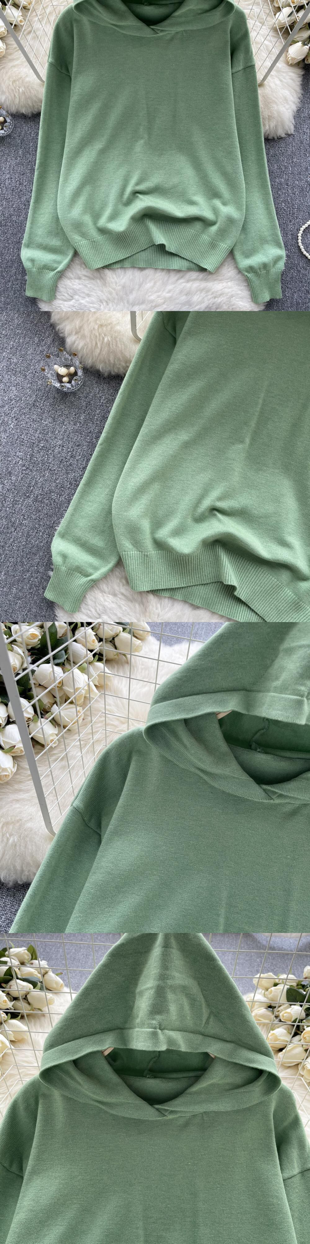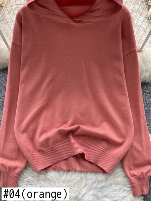 プルオーバーセーターフード付きジャンパールーズ長袖秋冬厚手暖かいニットセーター ロング オータム 秋物 ウィンター 冬物 ソリッドカラー