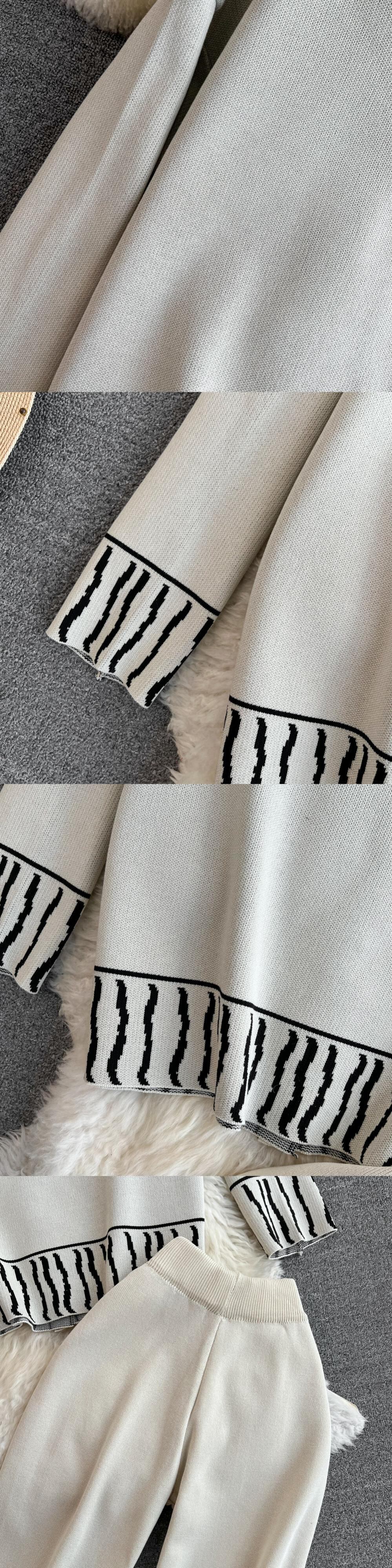 オフィスレディニットスーツシングルブレストペインティングカーディガン+ワイドレッグロングパンツ秋ルーズセーターセット オータム 秋物 ワイドパンツ ソリッドカラー 会社 学校 通勤や通学にも