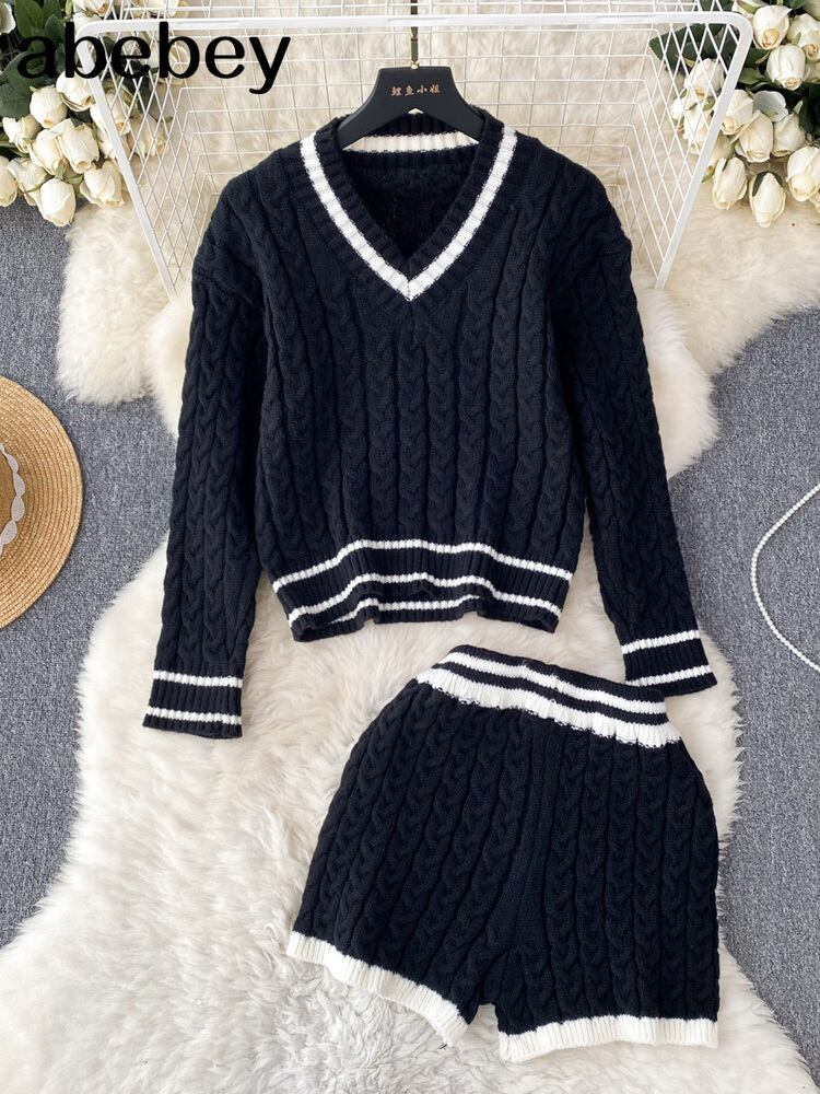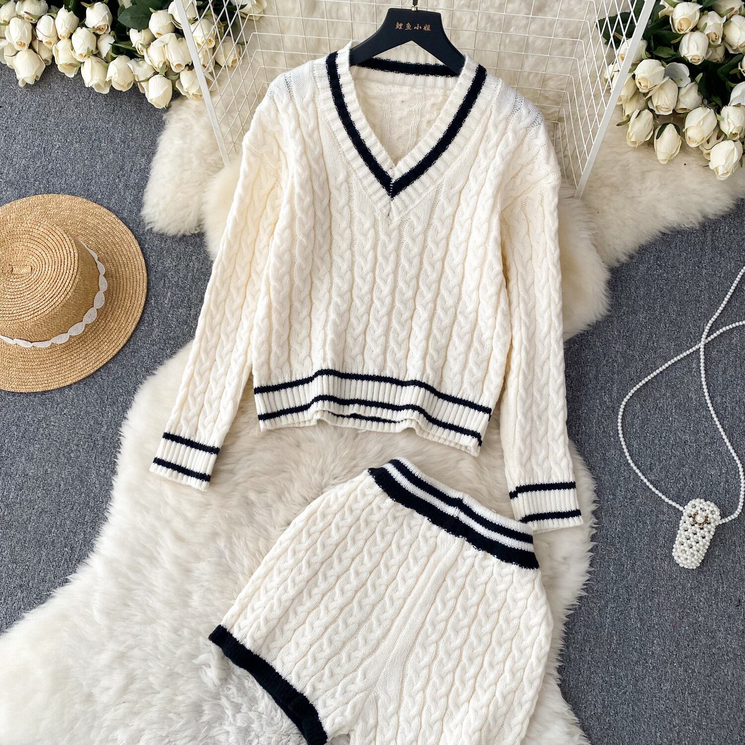 ルーズニットスーツストレートショーツスーツ長袖プルオーバーセータースーツ ロング ブルマー