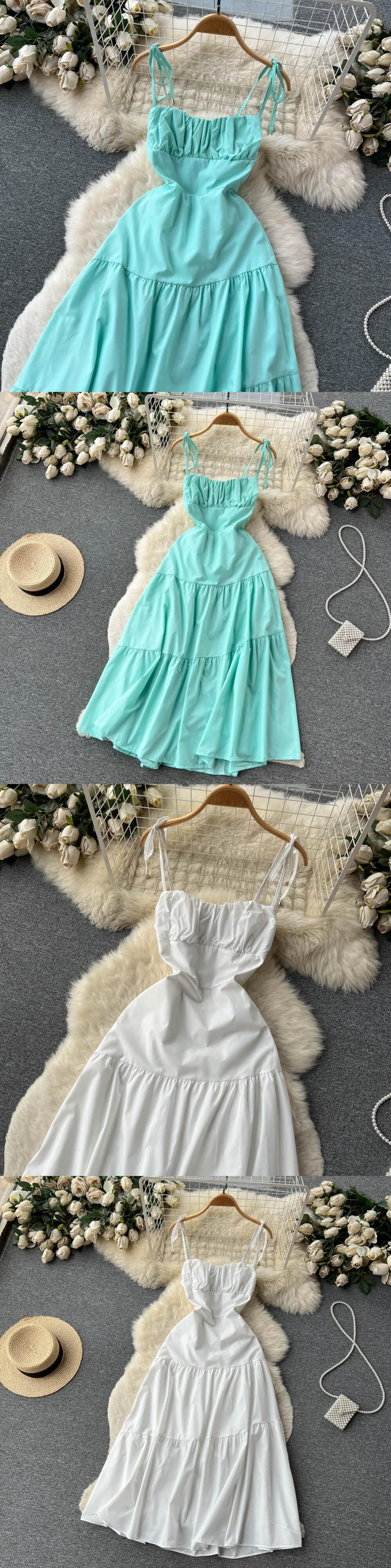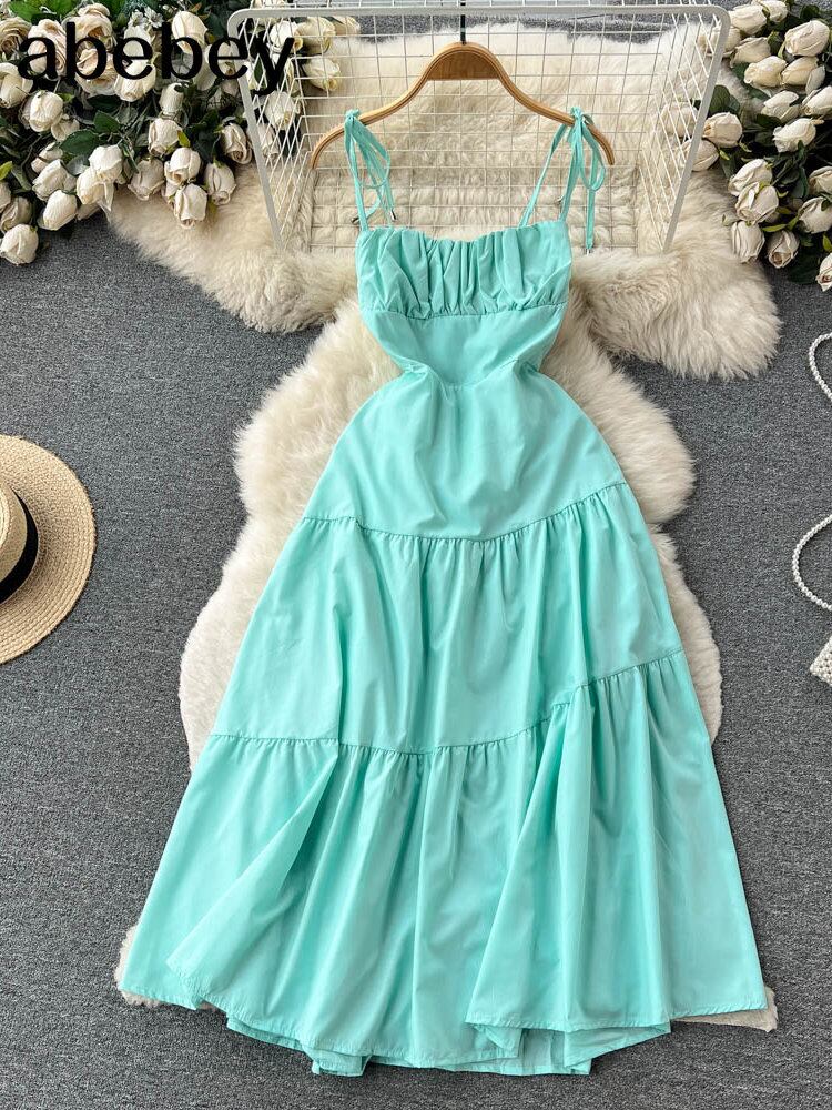 ストリートスパゲッティストラップセクシービーチサンドレスフレンチシャーリングホットスウィート弾性バックレスロングドレス エラスティック 伸縮 大人ガーリー キュート カジュアル