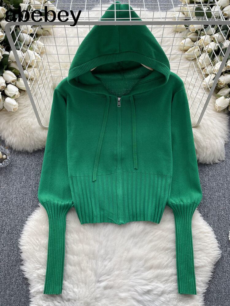 春秋ニットセーターコートフード付き長袖ルーズオーバーサイズカーディガントップス原宿ニットコート ロング かわいい スプリング 春物 オータム 秋物