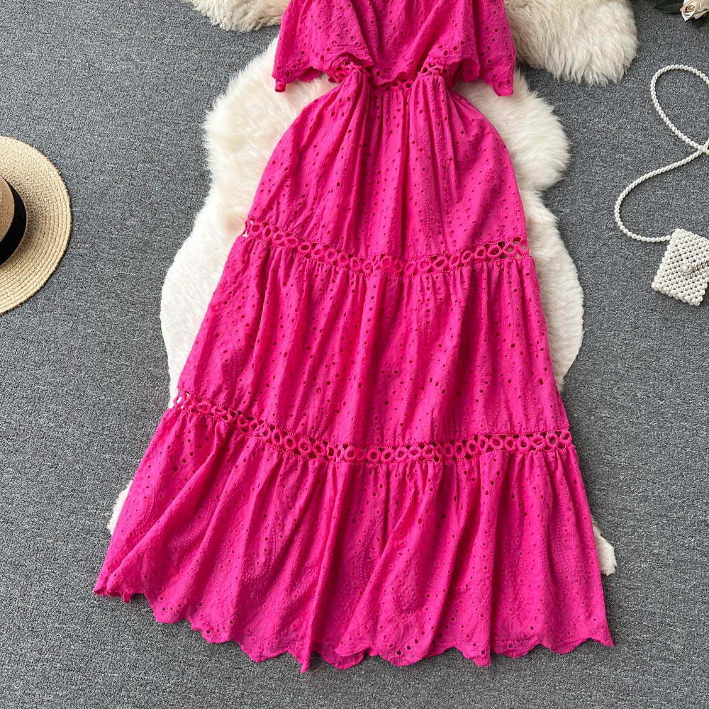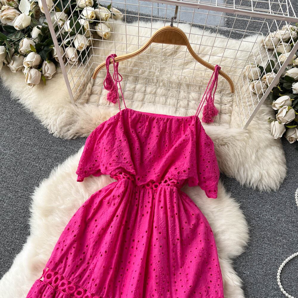 セクシーキャミソールソリッドドレススクエアカラーノースリーブパッチワークフリルトリムウエストミディドレス ソリッドカラー スクウェア