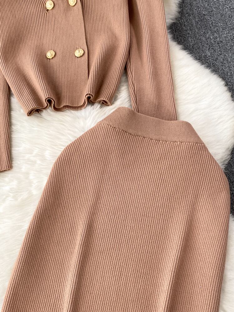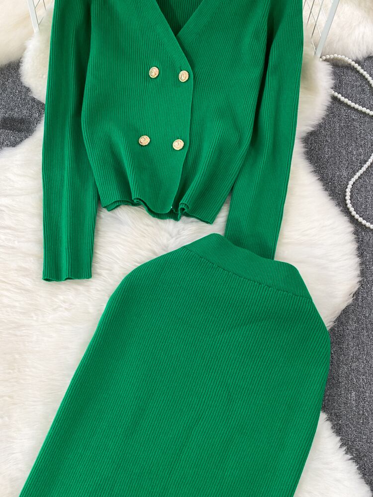 秋ニット 2 個セットソリッドボタンセーターカーディガン + ボディコンロングスカートセット 2 個スーツマッチングセット オータム 秋物 ソリッドカラー