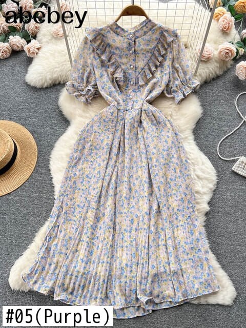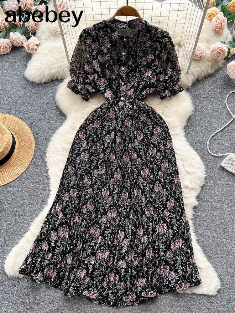 ボヘミアンルースシフォンサンドレスショートランタンスリーブプリントOネック優しい休暇ドレス