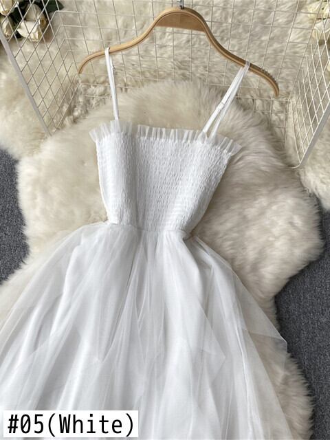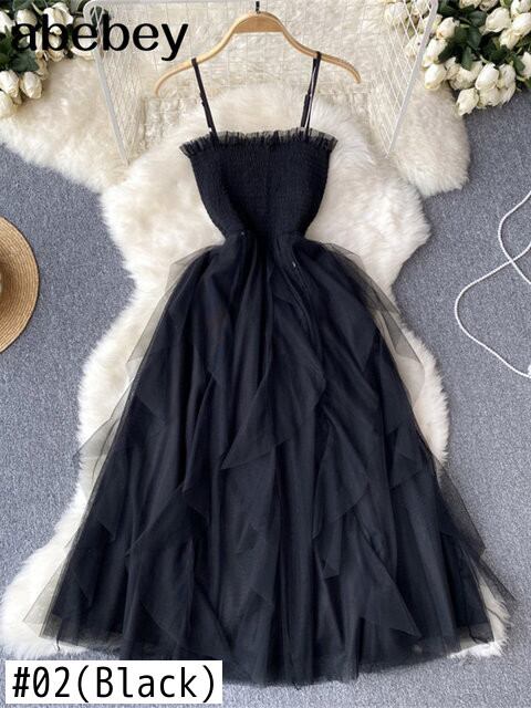 ストラップメッシュビーチドレスノースリーブシャーリング弾性ウエスト背中開いたサンドレス甘いフリル A ラインロングドレス ラッフル エラスティック 伸縮 大人ガーリー スウィート キュート カジュアル Aライン