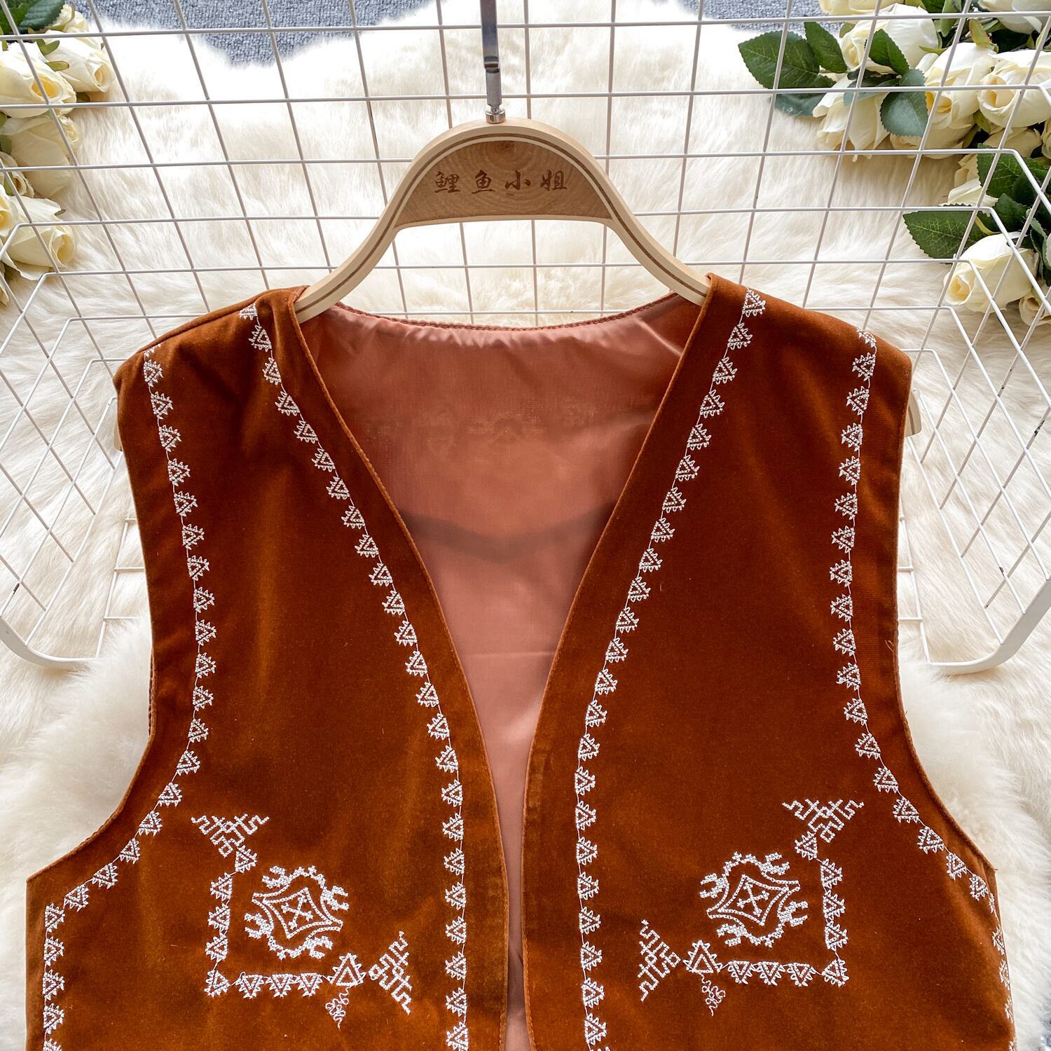 Y2k 花刺繍ベストトップ V ネックルーズ夏ショートカーディガンチョッキシックトップス サマー 夏物 花柄 Vネック