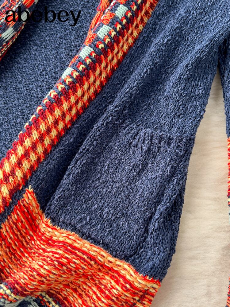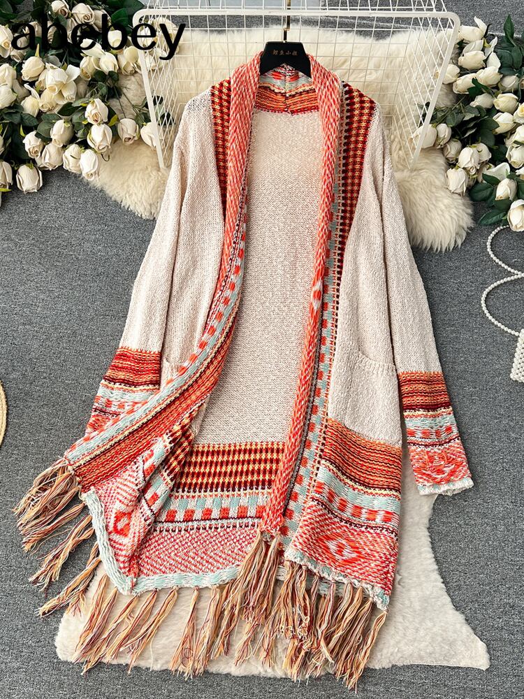旅詩人ボヘミアンテルニット長袖カーディガン秋と冬レトロエスニックスタイルロングセータージャケット オータム 秋物 ウィンター 冬物