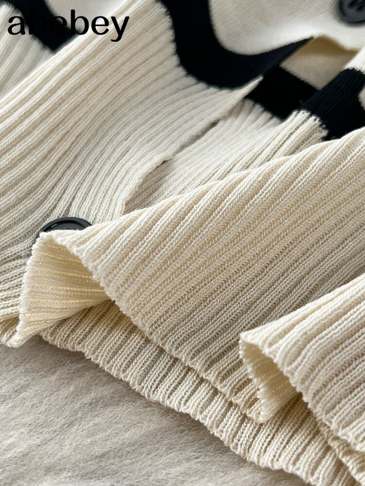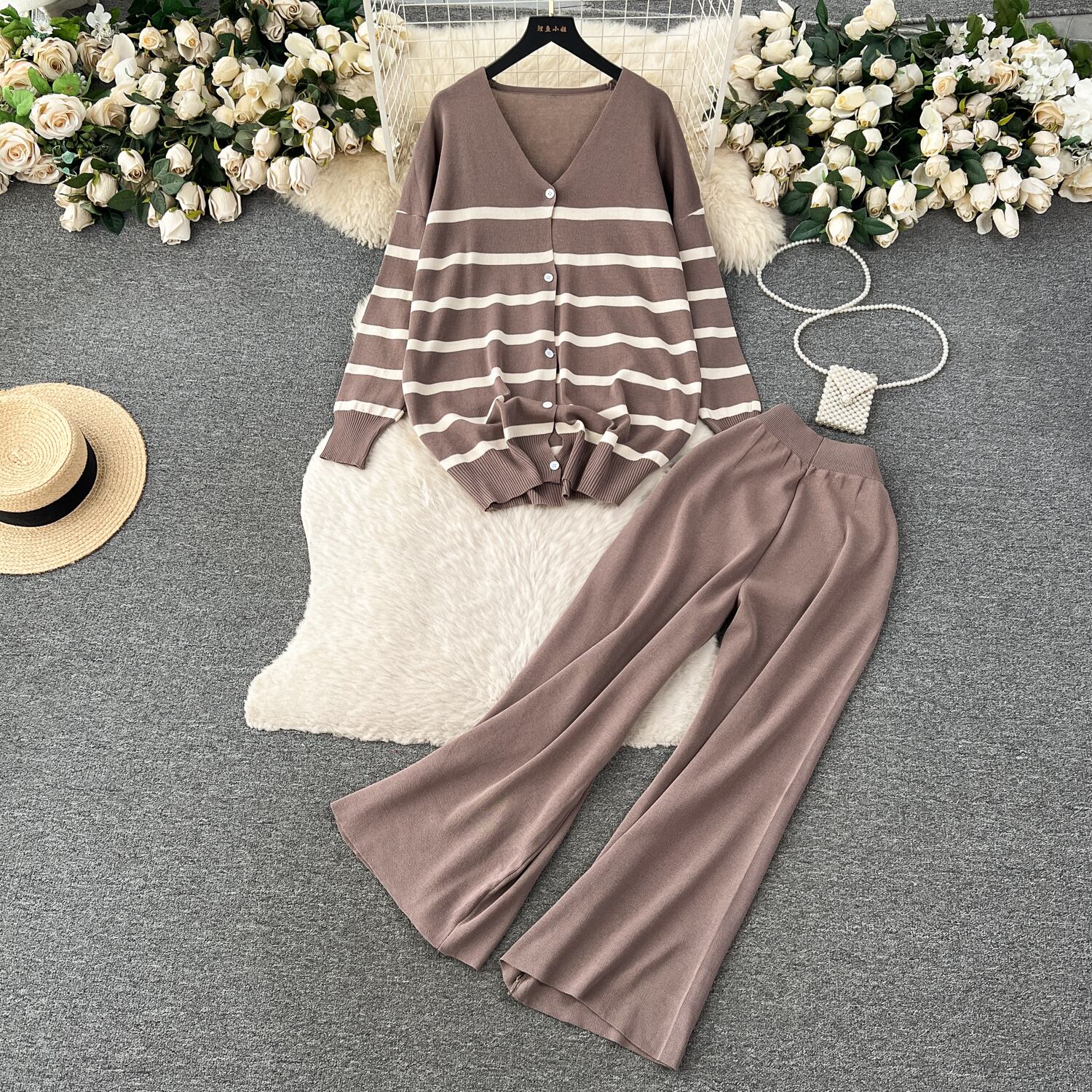 カーディガンセータージャージリブニットジャンパースーツ + ワイドレッグパンツ 2/2 ピース春セット スプリング 春物 ワイドパンツ