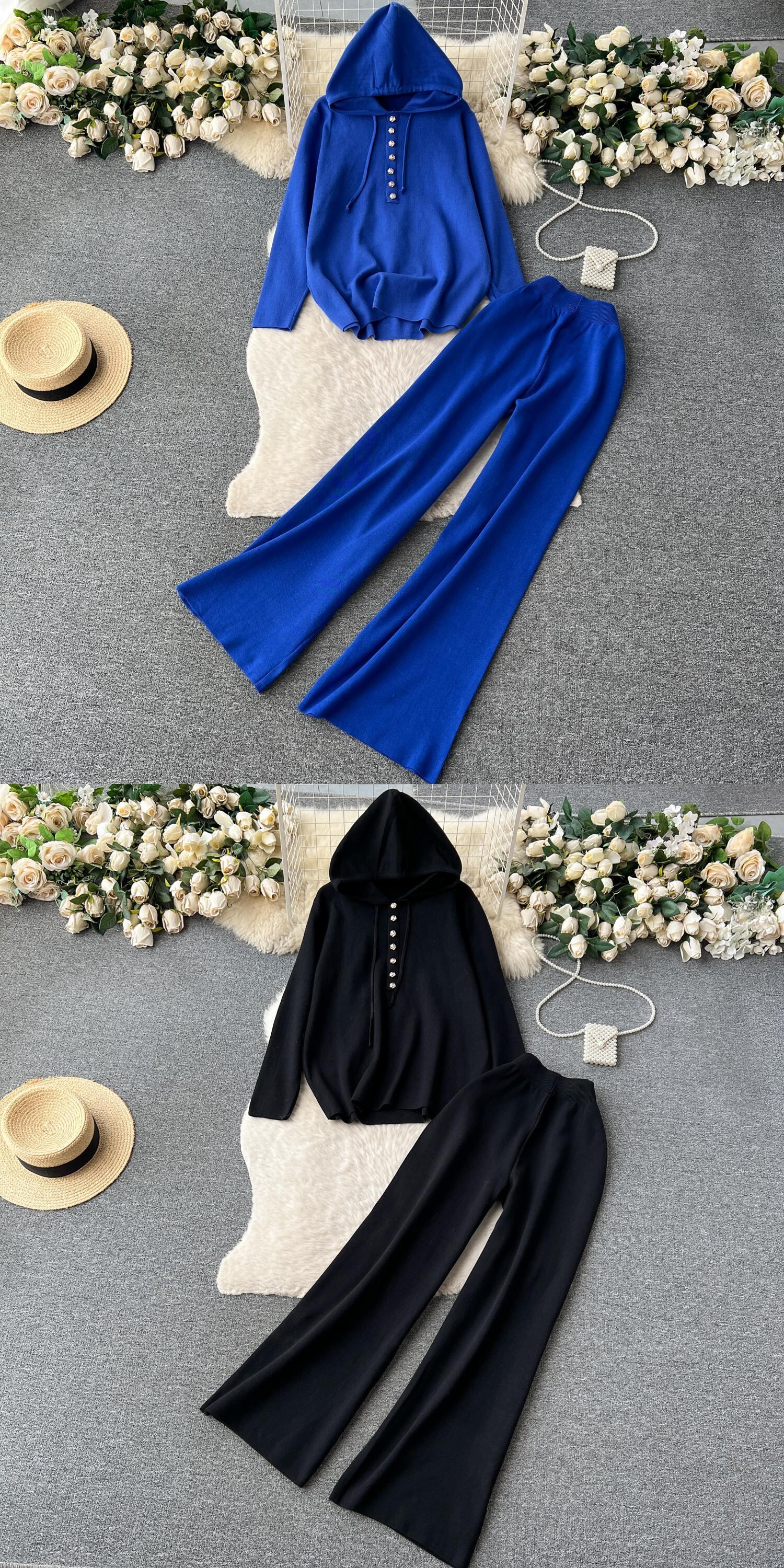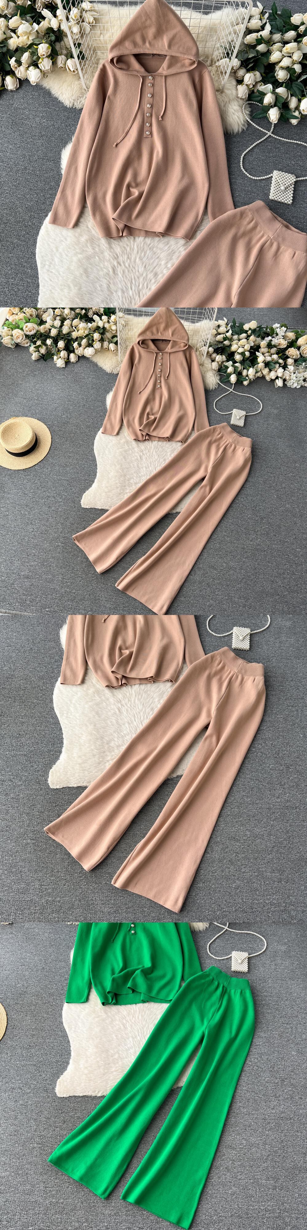 秋冬セータートラックスーツニット 2 本パンツセット居心地良い暖かいレディーススーツ オータム 秋物 ウィンター 冬物 ソリッドカラー