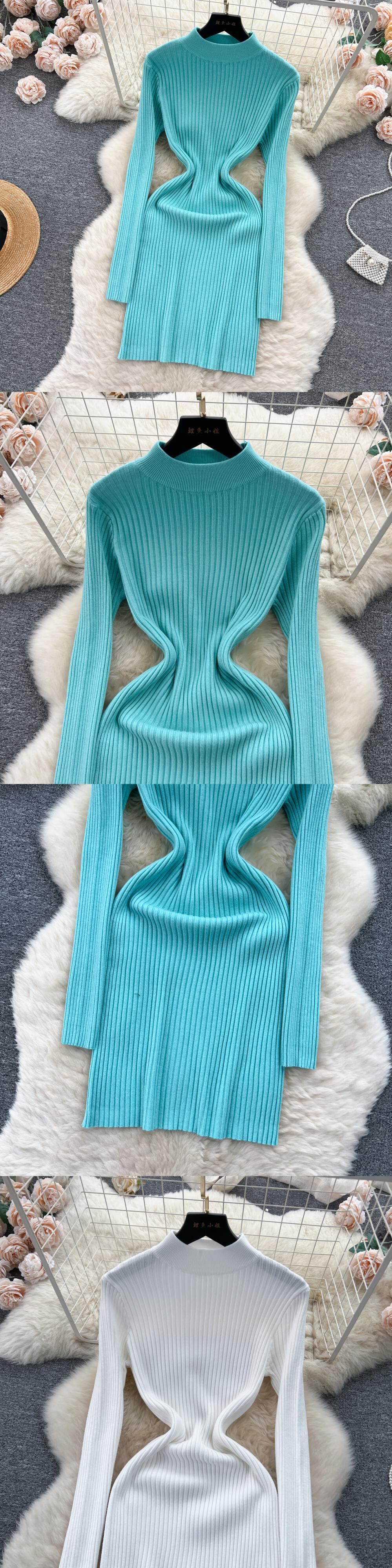 秋ニットドレス半襟ネックセクシースリム弾性基本ボディコンセータードレス冬ニット暖かいミニドレス エラスティック 伸縮 オータム 秋物 ウィンター 冬物