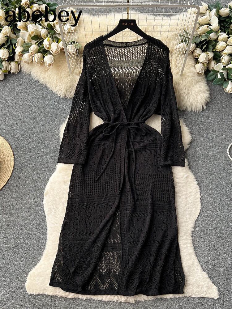 中空アウトフィッシュネットフリンジテルニットかぎ針編みチュニックビーチカバーアップビーチカバーアップビーチドレスビーチウェアビーチウェア