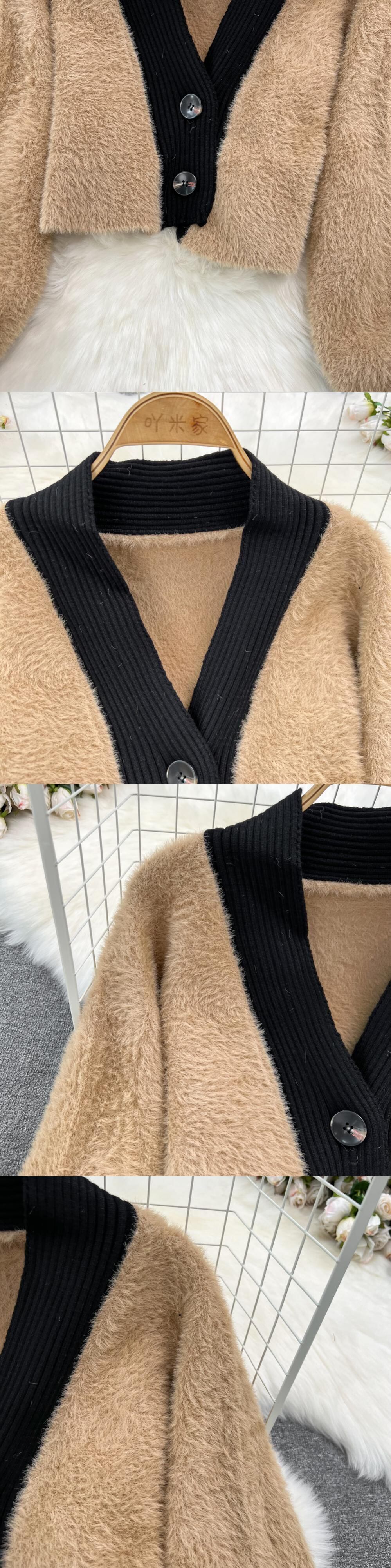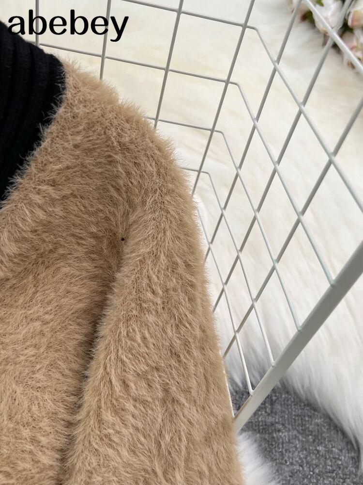ニットセットルーズ長袖ショートカーディガンセーター + 弾性ドレスフレンチスタイルツーピースセット衣装 ロング エラスティック 伸縮 ソリッドカラー
