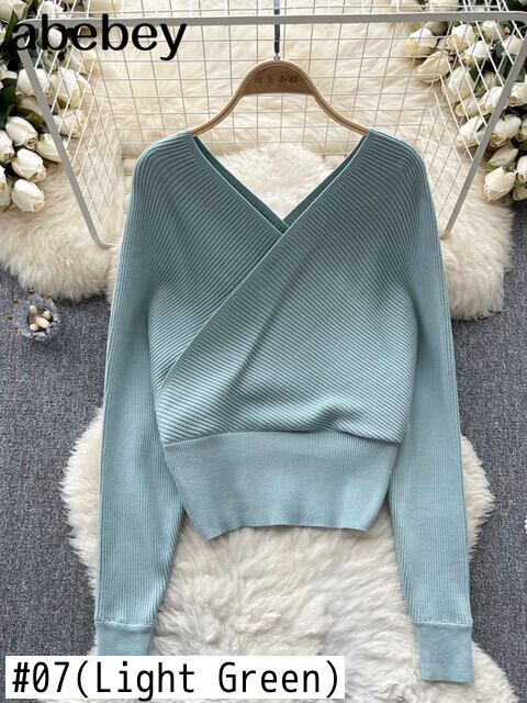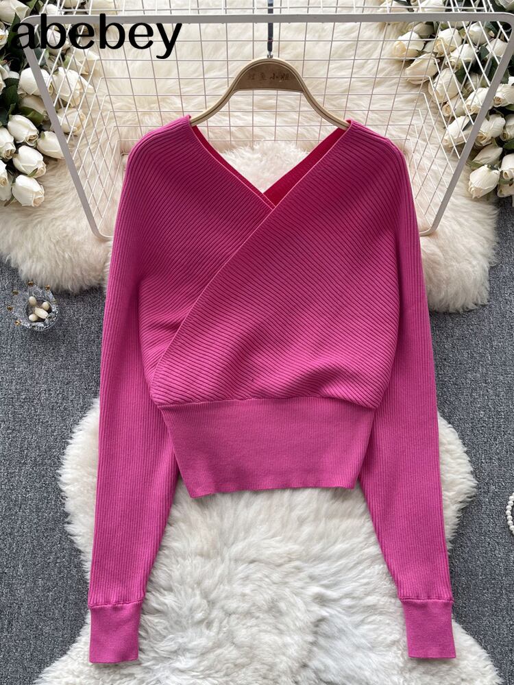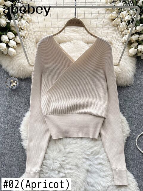 イレギュラーセンスクロス V ネックセーター通勤秋長袖ニットトップ ロング オータム 秋物 Vネック