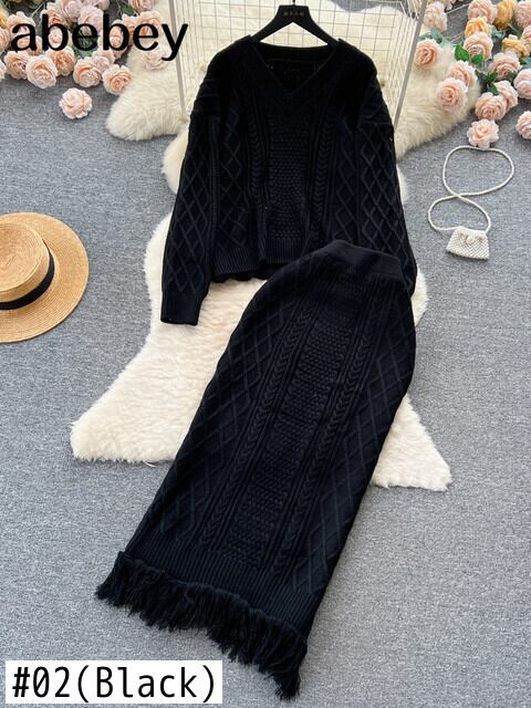 ソフトレディーススーツ2点セットVネックセーター&ミディドレスニットトラックスーツ