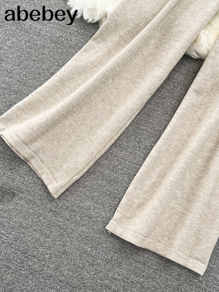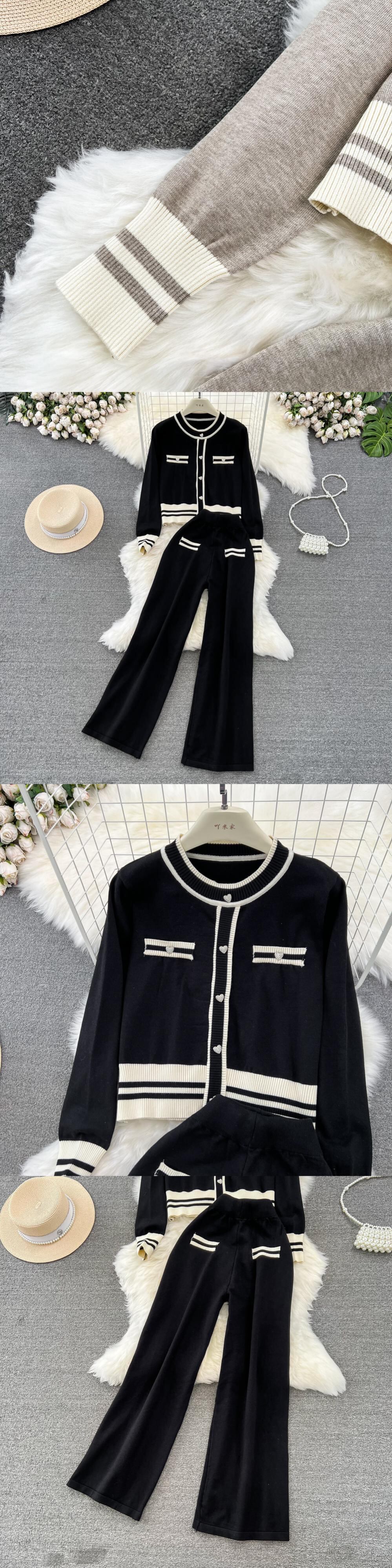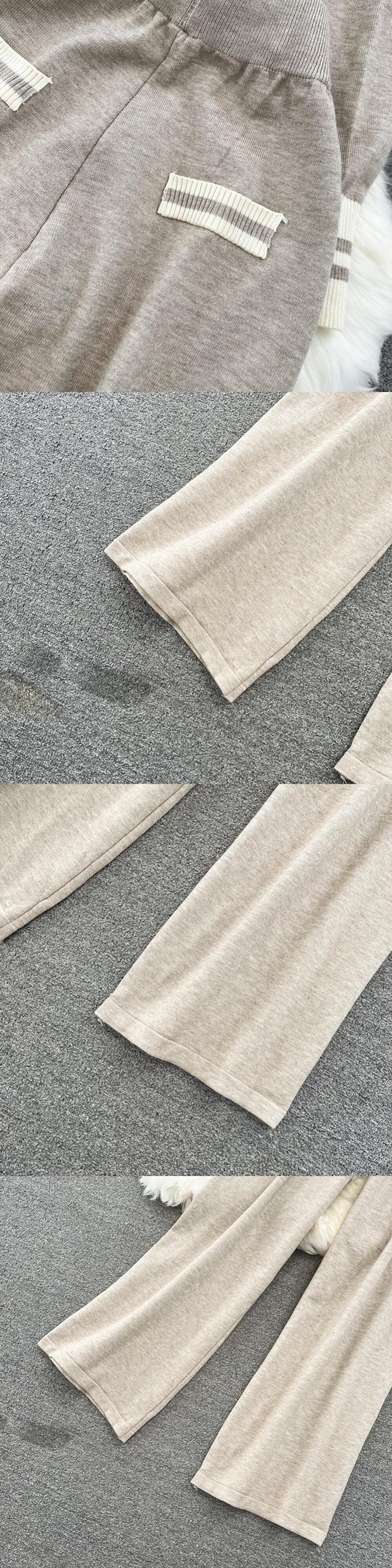 ストライプ 2 枚セーターセットトラックスーツ V ネックセーター + ルーズズボンシックプルオーバーセーター + ニットキャロットパンツセット Vネック