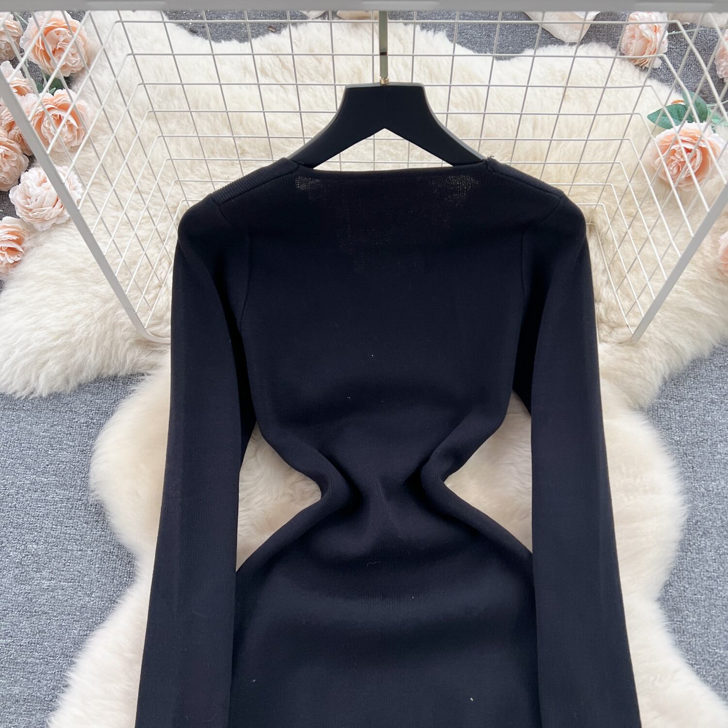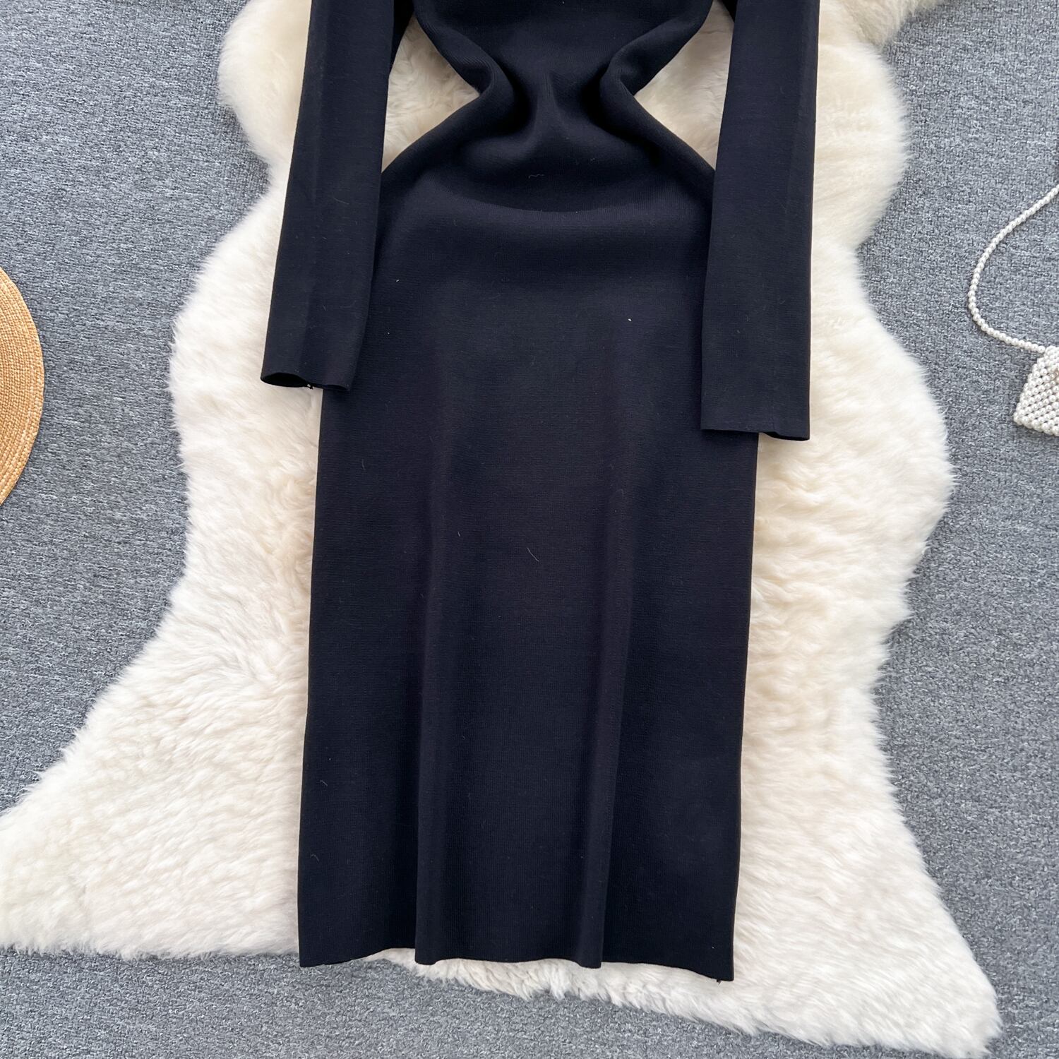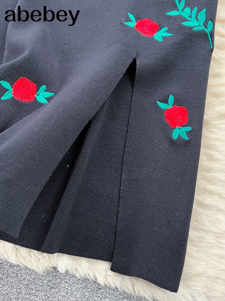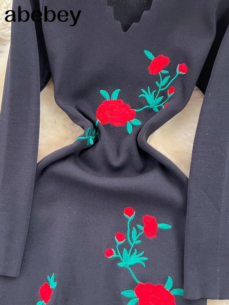 黒人秋ニットドレス V ネックセクシースリム弾性かぎ針編みボディコンセータードレス冬ニット暖かいロングドレス ブラック エラスティック 伸縮 オータム 秋物 ウィンター 冬物 Vネック