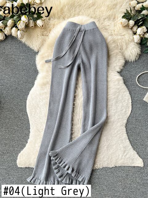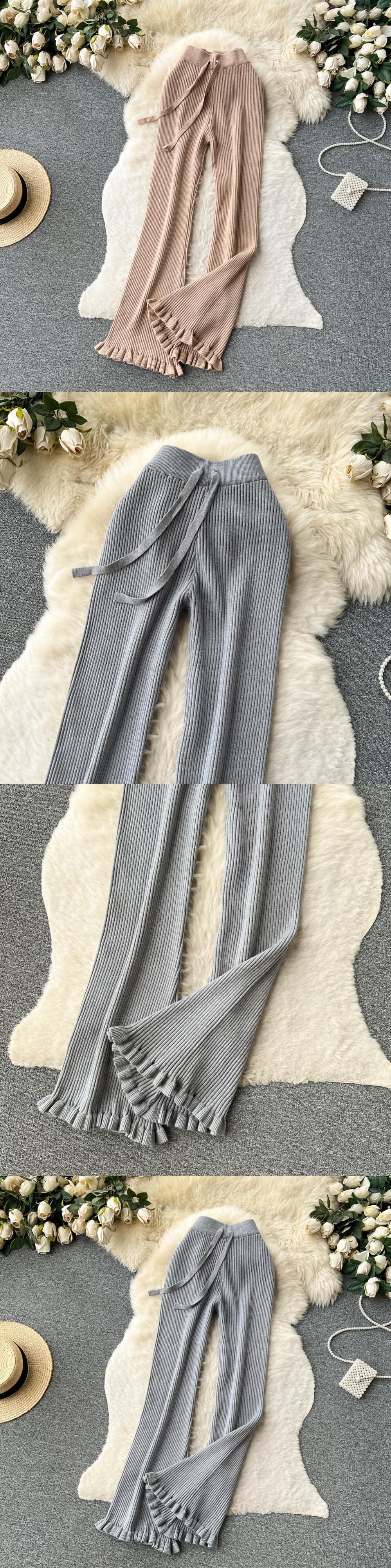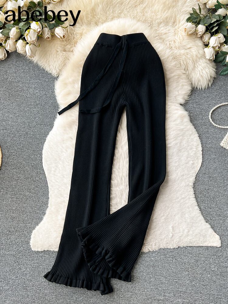 Tels ワイドレッグニットパンツ冬シックストライプルーズパンツ全身暖かいセーターパンツ ウィンター 冬物 ワイドパンツ