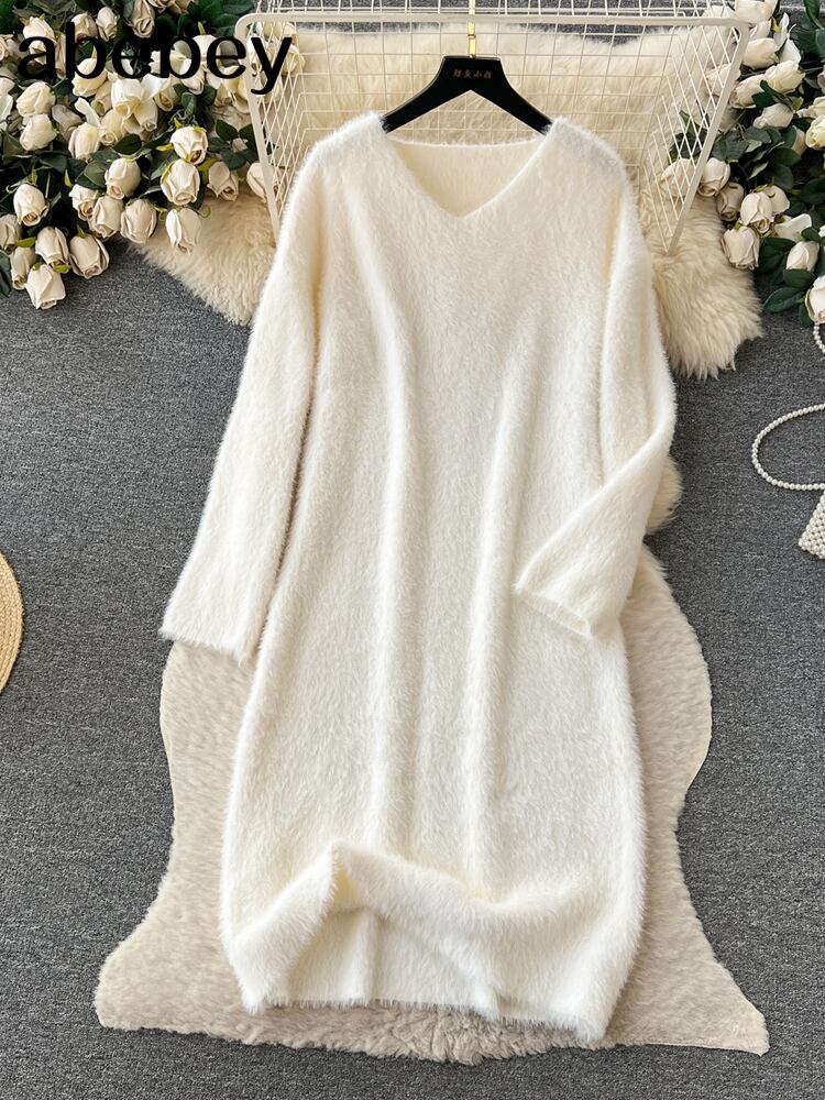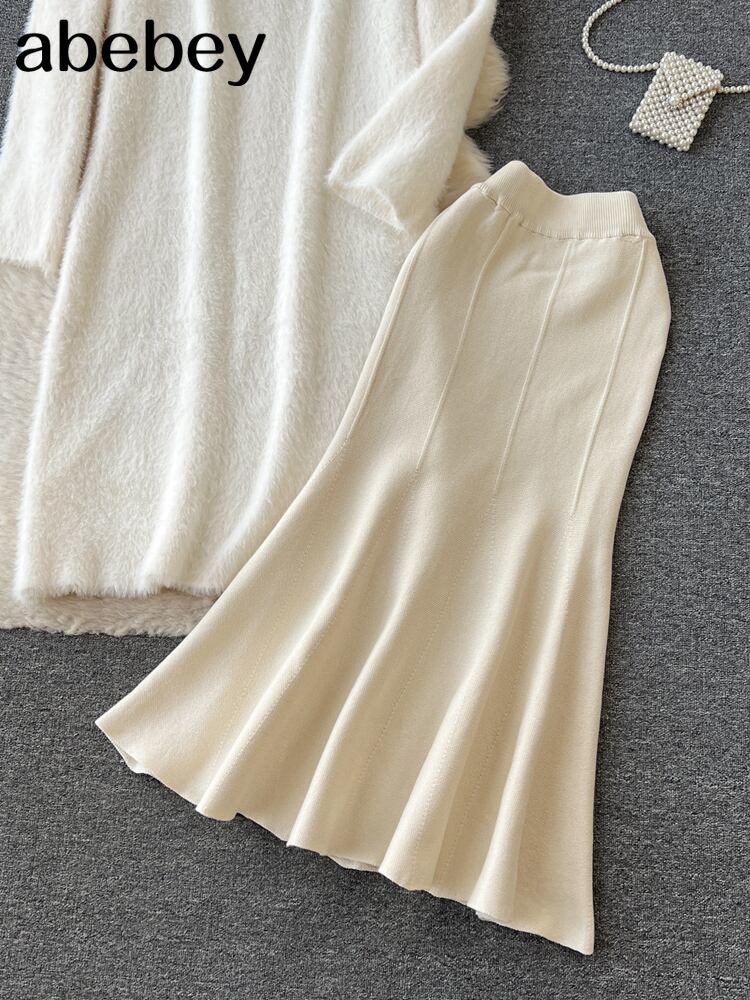 ツーピースセットレディース衣装冬ソリッドロングニットプルオーバーセーターセクシーマーメイド膝丈スカートセットストリートセーター ウィンター 冬物 ソリッドカラー